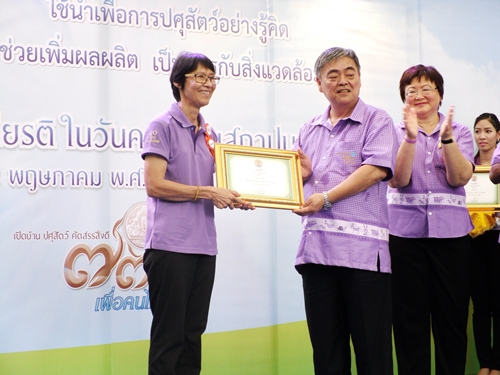 โดยศูนย์วิจัยและพัฒนาการสัตวแพทย์ภาคตะวันออกเฉียงเหนือตอนบน (ขอนแก่น) รางวัลหน่วยงานใสสะอาด ระดับดีเด่น รางวัลผู้มีคุณธรรมจริยธรรมดีเด่น สัตวแพทย์หญิงมาณวิภา ผลภาค นายสัตวแพทย์เชี่ยวชาญ ผู้อำนวยการศูนย์วิจัยและพัฒนาการสัตวแพทย์ภาคตะวันออกเฉียงเหนือตอนบน (ขอนแก่น) และนางรัตนีย์ ทองทา นักวิทยาศาสตร์ ศูนย์อ้างอิงโรคปากและเท้าเปื่อยฯ พร้อมทั้งนายสัตวแพทย์ปณิธาน ทองทา รับช่อดอกไม้แสดงความยินดีจากนายสัตวแพทย์อยุทธ์ หรินทรานนท์ อธิบดีกรมปศุสัตว์ เนื่องจากได้รับคัดเลือกให้เป็นข้าราชการพลเรือนดีเด่น ประจำปี พ.ศ. 2557 ด้วย