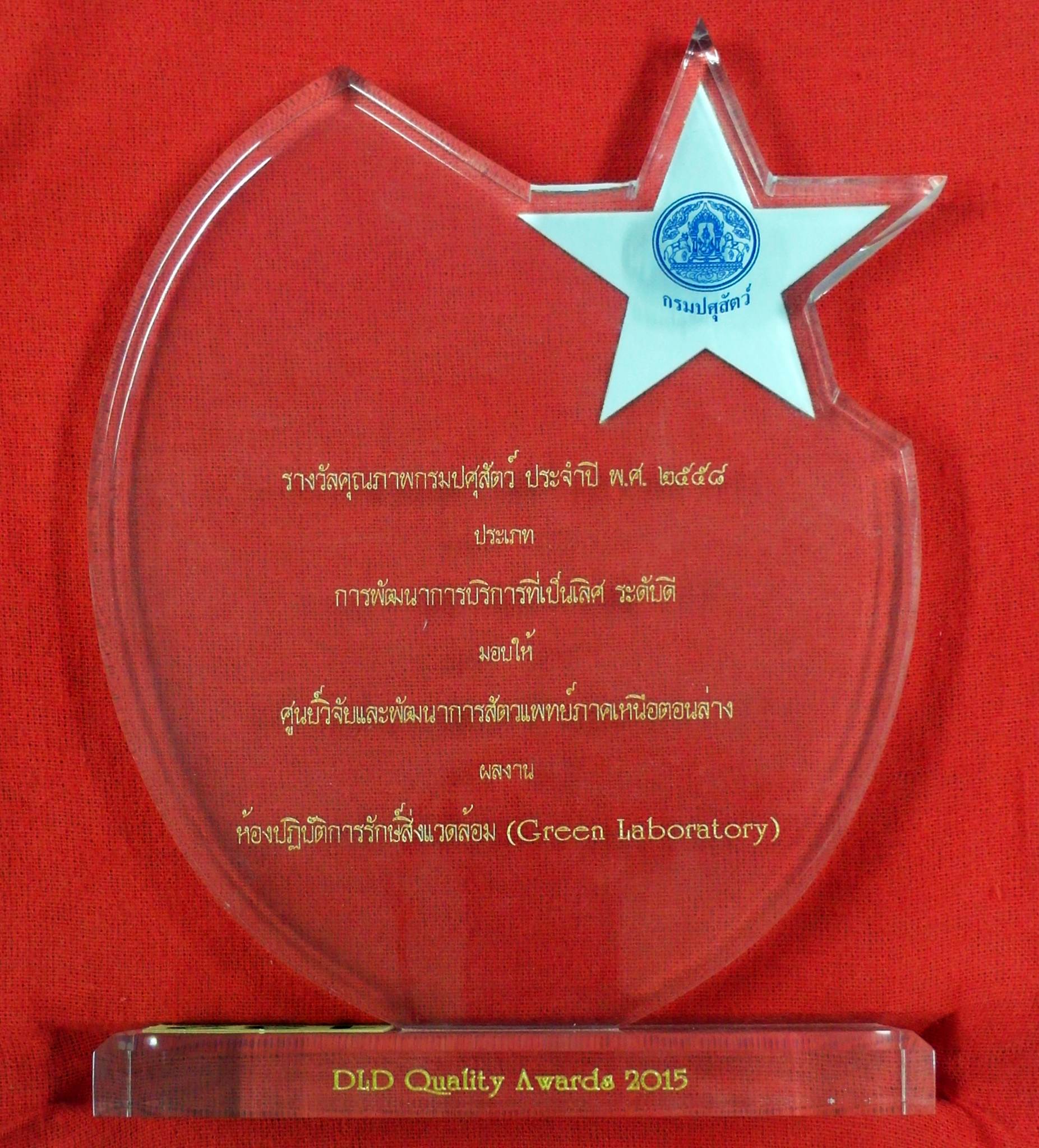 รางวัลคุณภาพการบริการที่เป็นเลิศ ระดับดี ประเภทรางวัลการพัฒนาบริการที่เป็นเลิศ 2 รางวัล ได้แก่ ผลงานห้องปฏิบัติการรักษ์สิ่งแวดล้อม (Green Laboratory) โดยศูนย์วิจัยและพัฒนาการสัตวแพทย์ภาคเหนือตอนล่าง (พิษณุโลก) และผลงานห้วยเตยโมเดลสู่การพัฒนาสุขภาพและผลผลิตโคนมโดยเกษตรกรรายย่อยอย่างยั่งยืน