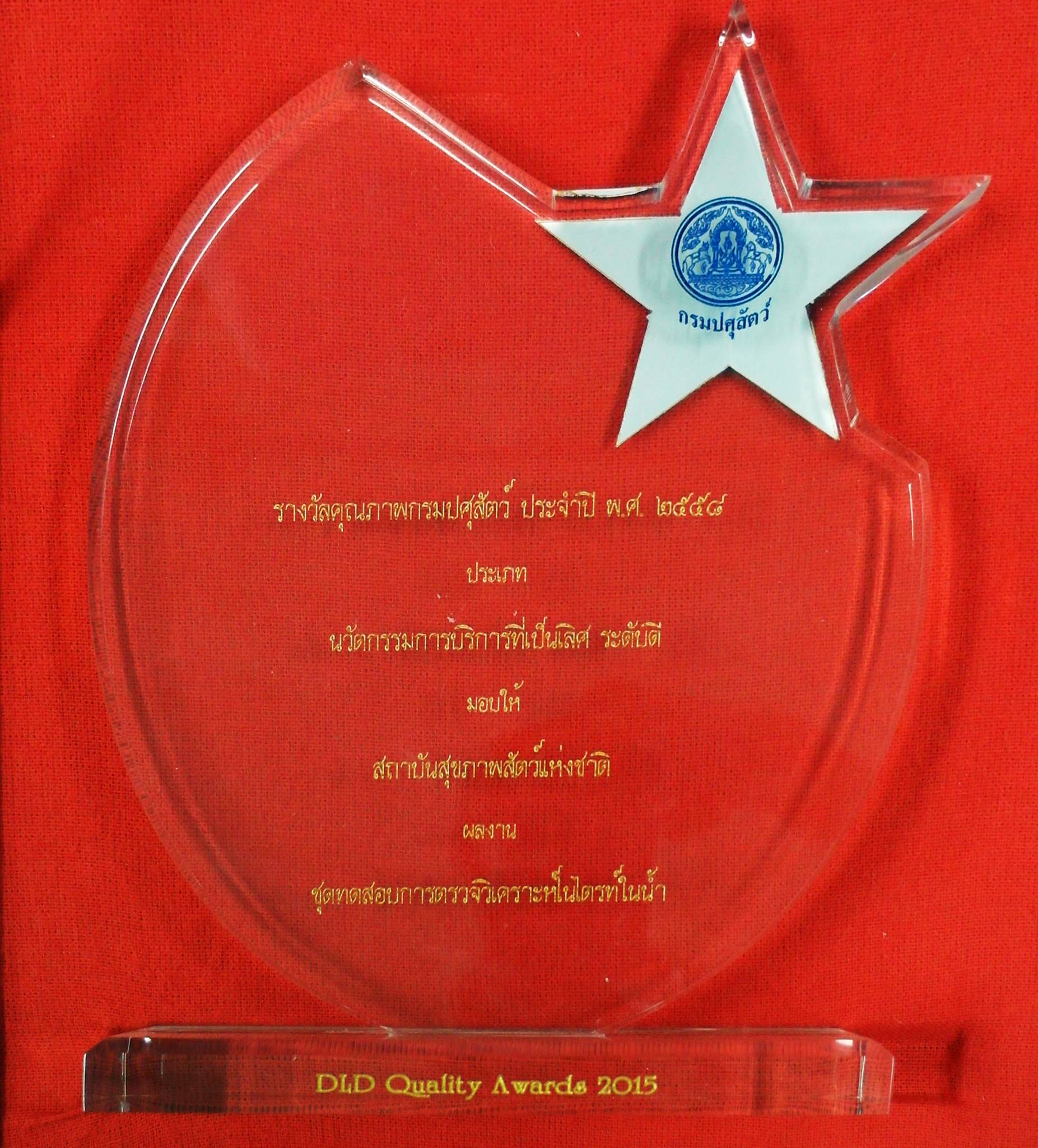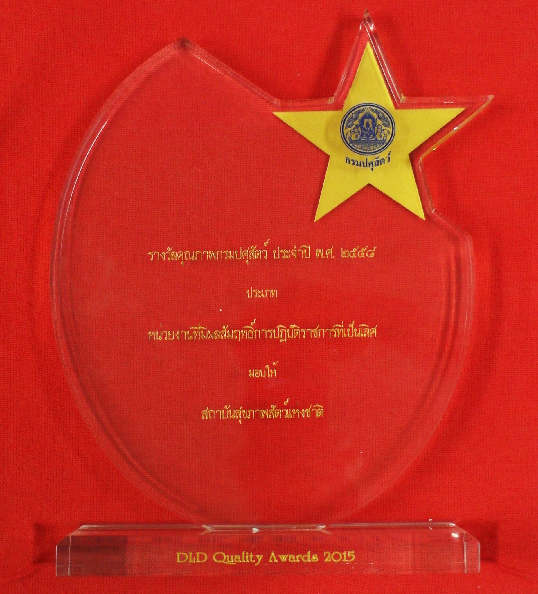 เมื่อวันที่ 5 พฤษภาคม 2558 วันคล้ายวันสถาปนากรมปศุสัตว์ นายสัตวแพทย์ปรีชา วงษ์วิจารณ์ ผู้อำนวยการสถาบันสุขภาพสัตว์แห่งชาติ และคณะ รับรางวัลคุณภาพกรมปศุสัตว์ ประจำปี พ.ศ. 2558 (DLD Quality Awards 2015) รางวัลหน่วยงานใสสะอาด และรางวัลผู้มีคุณธรรมจริยธรรมดีเด่น จากนายสัตวแพทย์อยุทธ์ หรินทรานนท์ อธิบดีกรมปศุสัตว์ ดังนี้