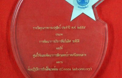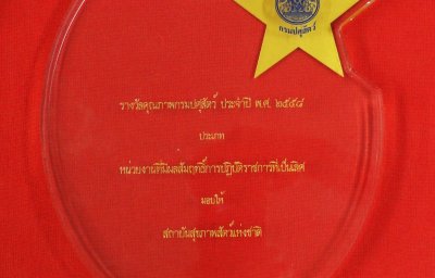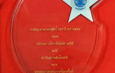 รางวัลคุณภาพการบริการที่เป็นเลิศ ระดับดี ประเภทรางวัลนวัตกรรมการบริการที่เป็นเลิศ ผลงานชุดทดสอบการตรวจวิเคราะห์ไนไตรท์ในน้ำ" โดยกลุ่มชีวเคมีและพิษวิทยา