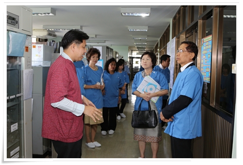 เมื่อวันที่ 19 สิงหาคม 2556 คุณทวีสิฏฐ์ บุญญาภิบาล หัวหน้ากลุ่มพัฒนาระบบบริหาร กรมปศุสัตว์ นำคณะกรรมการพัฒนาระบบราชการเฉพาะกิจเกี่ยวกับการยกระดับคุณภาพมาตรฐานและลดขั้นตอนระยะเวลาการปฏิบัติงานราชการ และคณะผู้ตรวจประเมินรางวัลบริการภาครัฐแห่งชาติจากสำนักงานพัฒนาระบบข้าราชการ (ก.พ.ร.) เพื่อตรวจประเมินเรื่องการผลิตวัคซีนอหิวาต์สุกรชนิดใหม่โดยไม่ใช้กระต่ายของสถาบันสุขภาพสัตว์แห่งชาติในการนี้นายสัตวแพทย์ปรีชา วงษ์วิจารณ์ ผู้อำนวยการสถาบันสุขภาพสัตว์แห่งชาติ พร้อมด้วยคณะผู้เชี่ยวชาญและนักวิชาการ ให้การต้อนรับและบรรยายสรุป พร้อมทั้งมีการนำคณะฯ เยี่ยมชมการปฏิบัติงานของกลุ่มไวรัสวิทยาด้วย