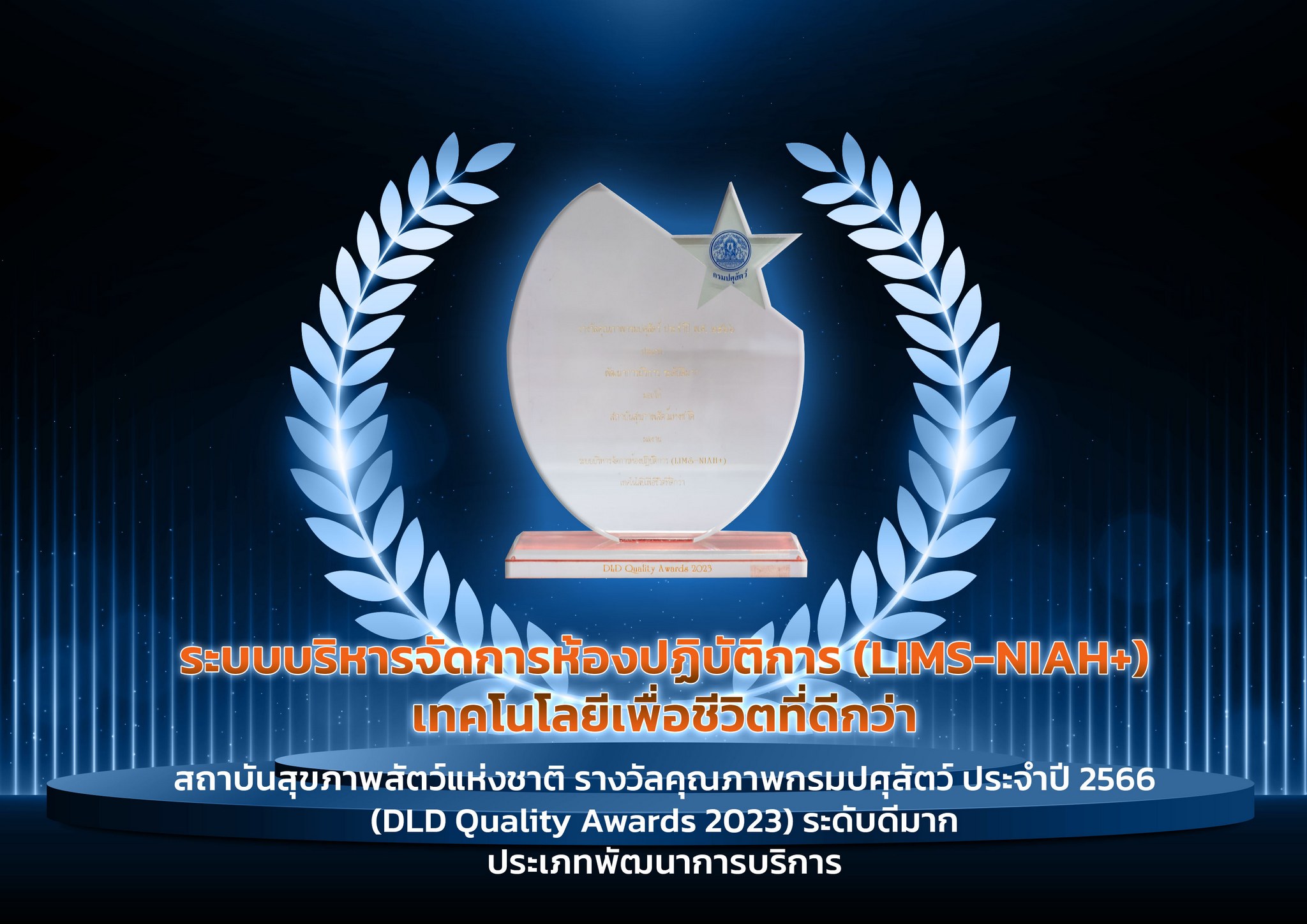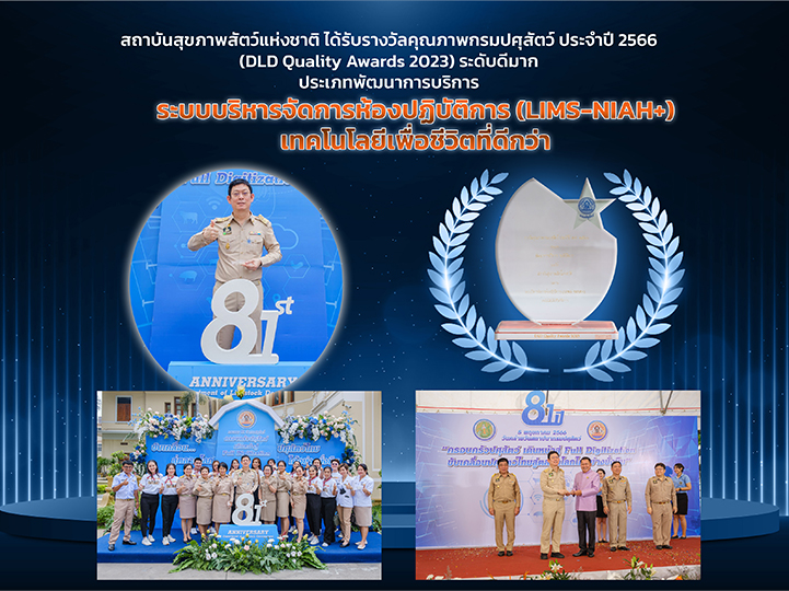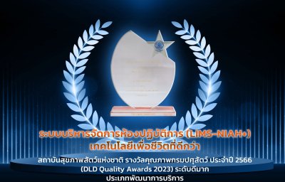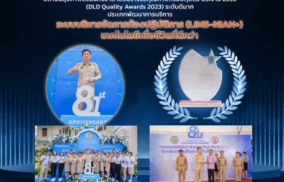 ระดับดีมาก ประเภทพัฒนาการบริการ ได้แก่ ระบบบริหารจัดการห้องปฏิบัติการ (LIMS-NIAH+) เทคโนโลยีเพื่อชีวิตที่ดีกว่า