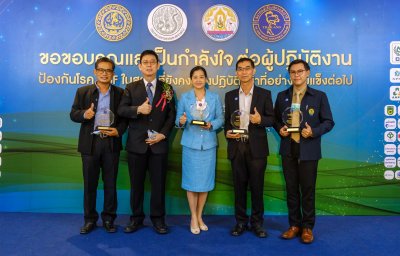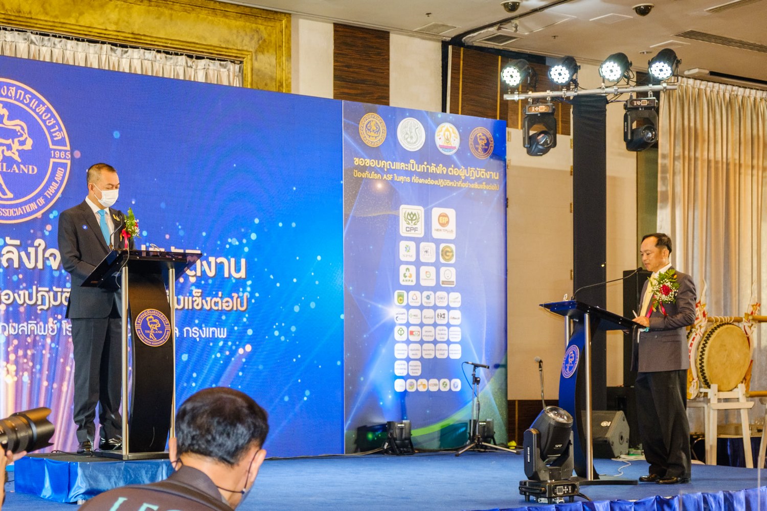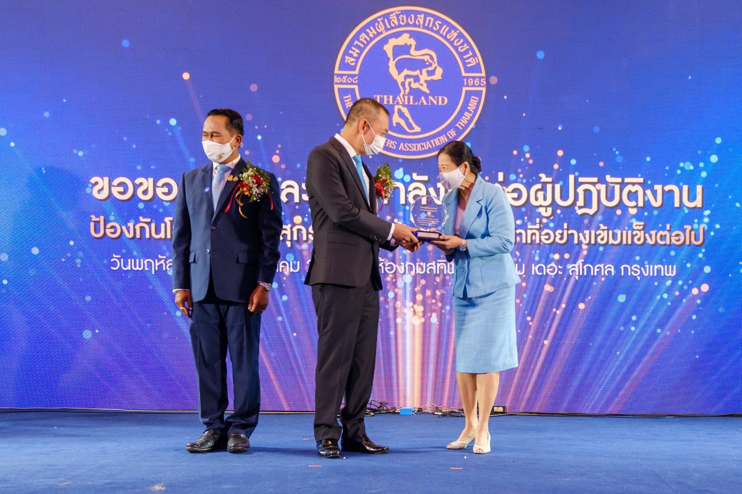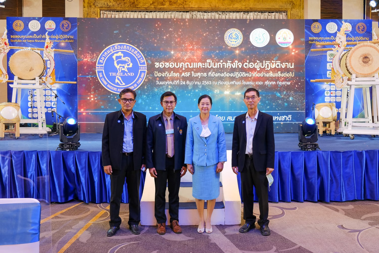 วันที่ 24 ธันวาคม 2563 เวลา 10.30 น. สพ.ญ.ดร.พัชรี ทองคำคูณ ผู้อำนวยการสถาบันสุขภาพสัตว์แห่งชาติ ได้เข้ารับโล่เกียรติคุณขอขอบคุณและเป็นกำลังใจต่อผู้ปฎิบัติงาน ร่วมป้องกันโรค ASF ในสุกร ที่ยังคงต้องปฏิบัติงานอย่างเข้มแข็งต่อเนื่อง โดย พลเอกประยุทธ์ จันทรโอชา นายกรัฐมนตรีมอบหมาย ดร.เฉลิมชัย ศรีอ่อน รัฐมนตรีว่าการกระทรวงเกษตรและสหกรณ์ เป็นประธานในพิธีเปิด "ขอขอบคุณและเป็นกำลังใจต่อผู้ปฎิบัติงาน ร่วมป้องกันโรค ASF ในสุกรที่ยังคงต้องปฏิบัติงานอย่างเข้มแข็งต่อเนื่อง" พร้อมด้วยนายสัตวแพทย์สรวิศ ธานีโต อธิบดีกรมปศุสัตว์ รองอธิบดีกรมปศุสัตว์ทั้ง 4 ท่าน น.สพ.วิวัฒน์ พงษ์วิวัฒนชัย อุปนายกสมาคมผู้เลี้ยงสุกรแห่งชาติ ผู้แทนจากกระทรวงพาณิชย์ เกษตรกร สมาคมและผู้ประกอบการอุตสาหกรรมสุกร ทั้งหน่วยงานภาครัฐและภาคเอกชน ณ โรงแรมสุโกศล กรุงเทพ