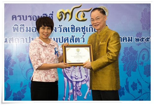รางวัลการบริการภาครัฐแห่งชาติ ประจำปี พ.ศ.2558 รางวัลพัฒนาคุณภาพการบริการอย่างต่อเนื่อง ผลงานภาพรวมมาตรฐานการบริการทางห้องปฏิบัติการด้านสุขภาพสัตว์