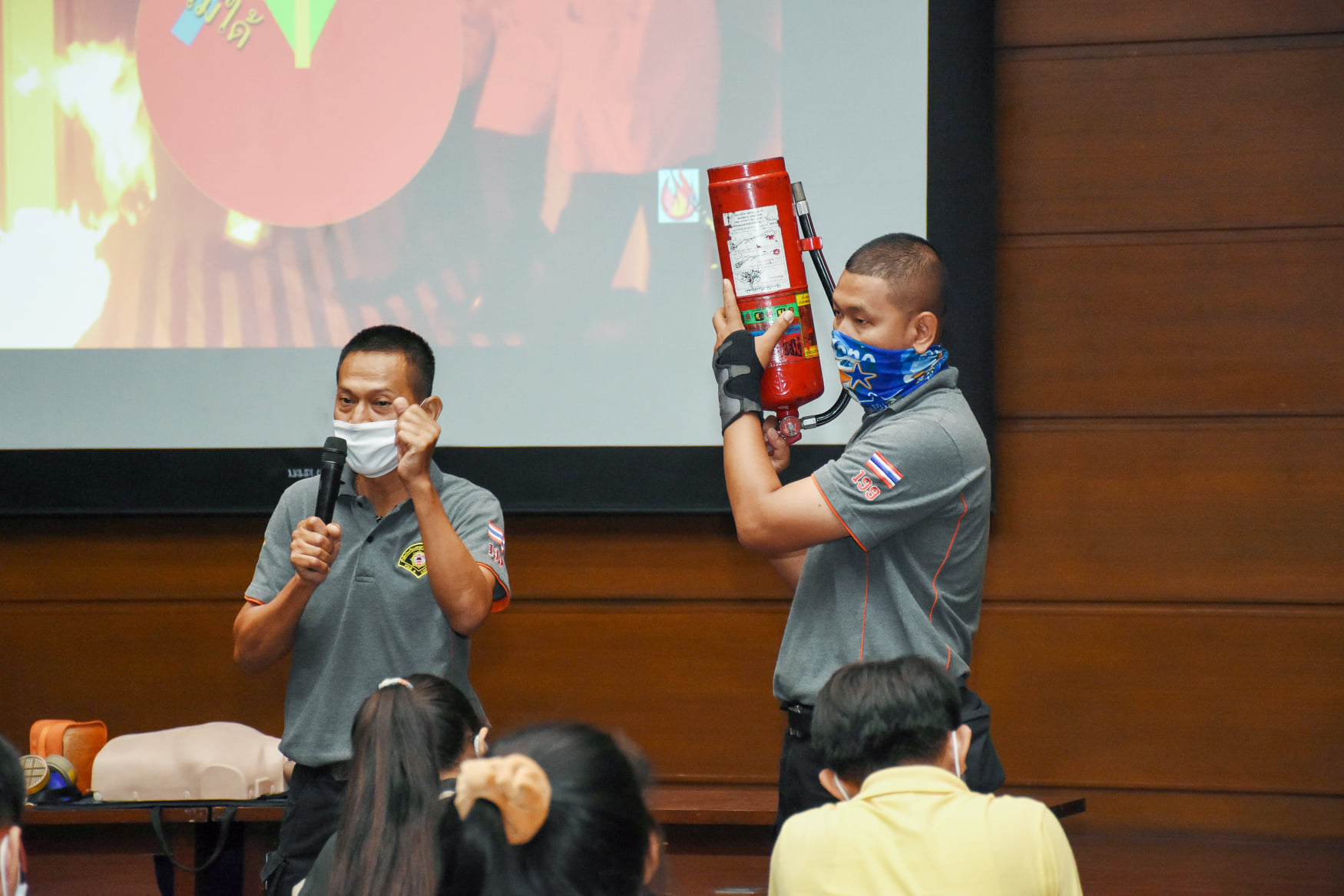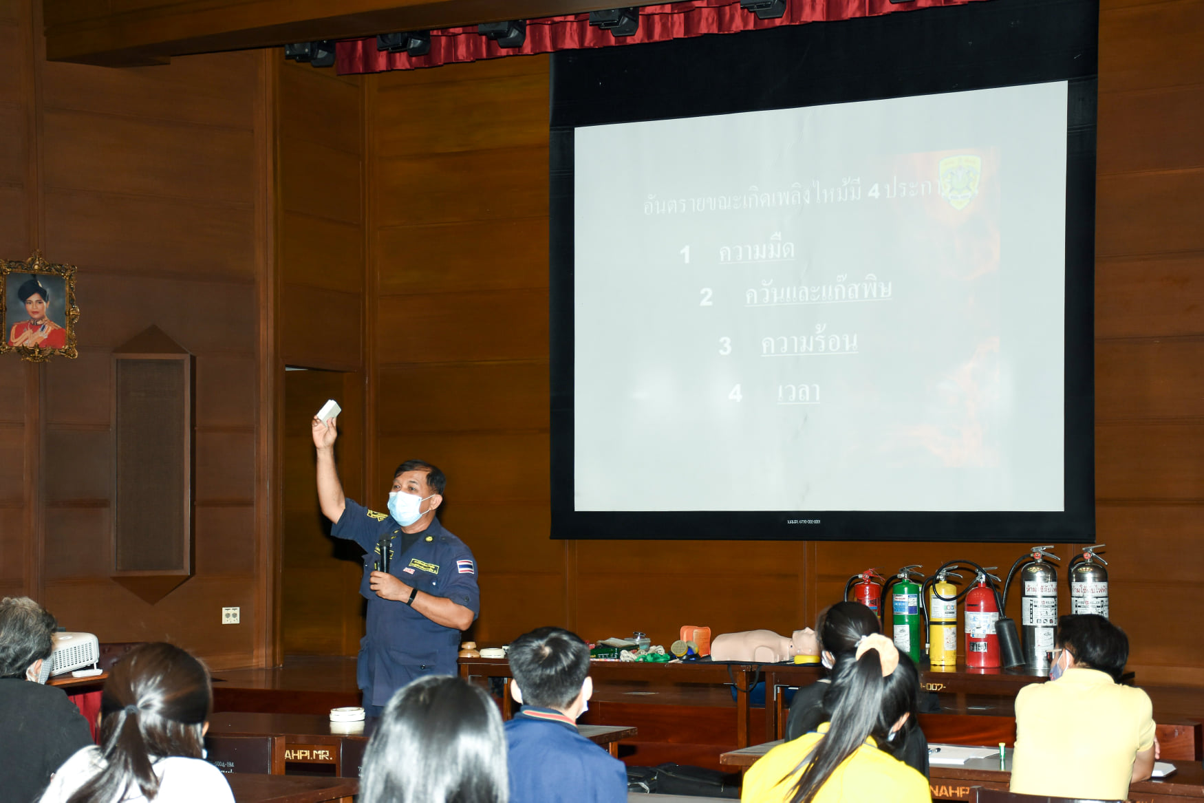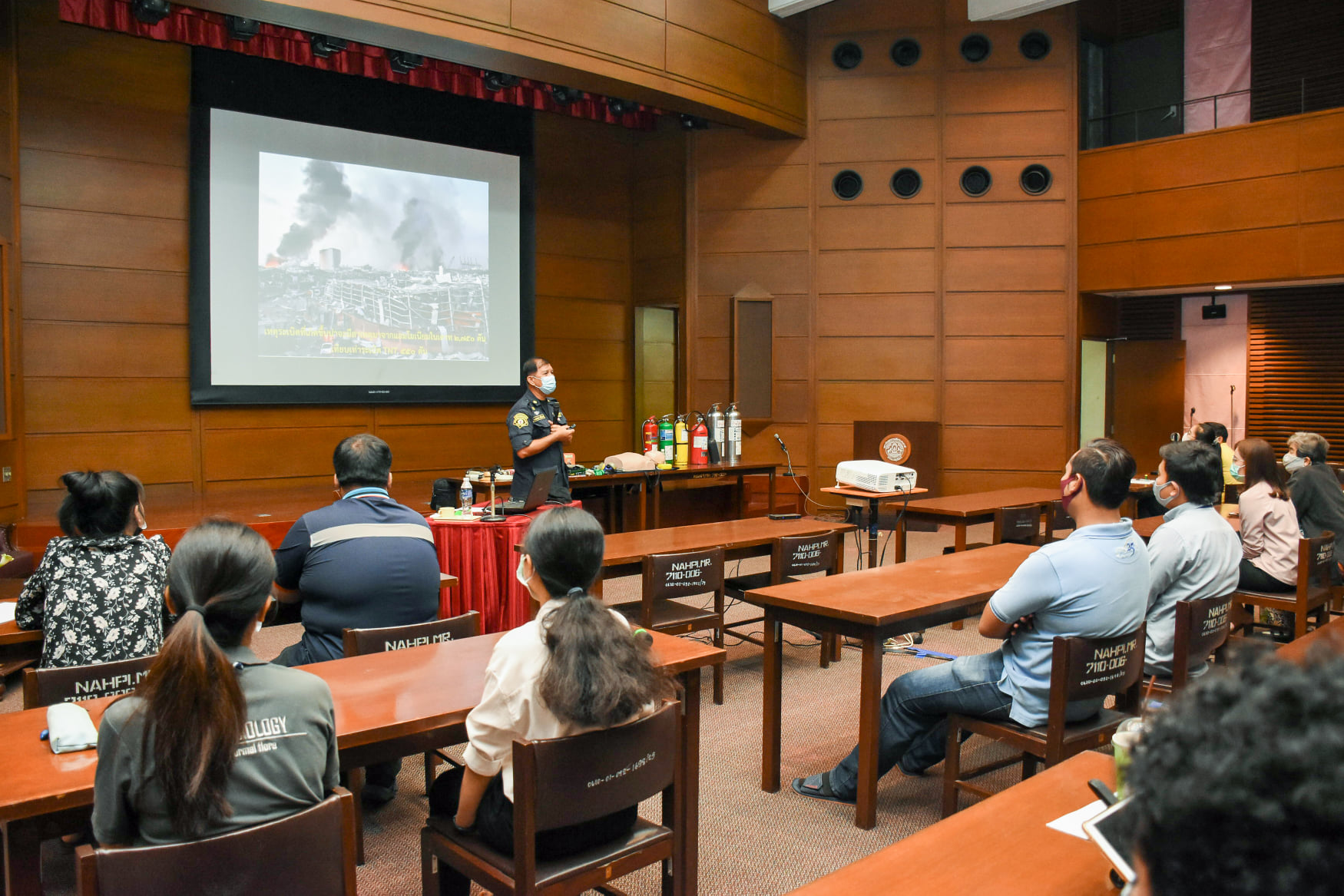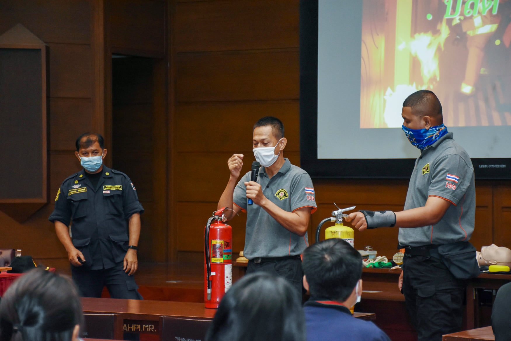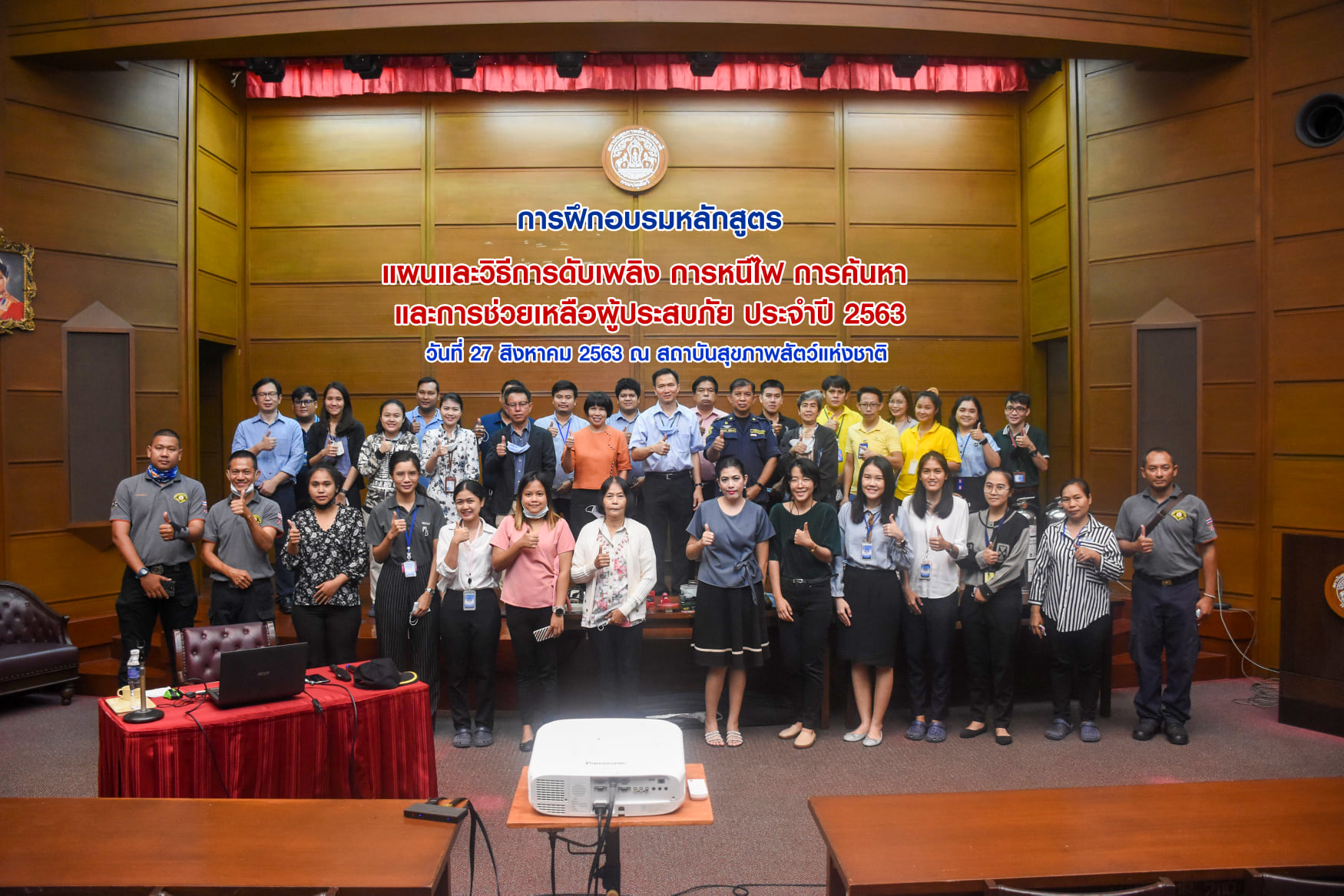 เมื่อวันที่ 27 สิงหาคม 2563 น.สพ.เชาวฤทธิ์ บุญมาทิต ผู้อำนวยการสถาบันสุขภาพสัตว์แห่งชาติ เป็นประธานเปิดการฝึกอบรม หลักสูตร แผนและวิธีการดับเพลิง การหนีไฟ การค้นหา และการช่วยเหลือผู้ประสบภัย ณ ห้องประชุม สถาบันสุขภาพสัตว์แห่งชาติ โดยมี จ.ส.ต.มงคล ศรีสังวาล และเจ้าหน้าที่จากสถานีดับเพลิงและกู้ภัยดุสิต เป็นวิทยากรให้ความรู้เกี่ยวกับสาเหตุของการเกิดเพลิงไหม้ วิธีป้องกันเพลิงไหม้ได้อย่างถูกต้อง การใช้งานอุปกรณ์ถังดับเพลิงประเภทต่างๆ รวมถึงมีทักษะในการใช้อุปกรณ์ดับเพลิงเข้าทำการระงับเหตุเบื้องต้นได้อย่างรวดเร็วและมีประสิทธิภาพ เพื่อลดการสูญเสียทั้งชีวิตและทรัพย์สินจากเหตุเพลิงไหม้