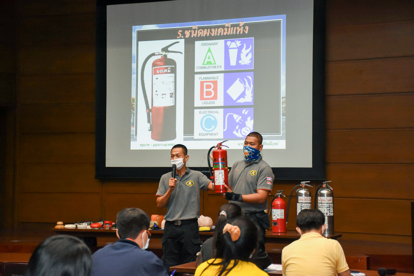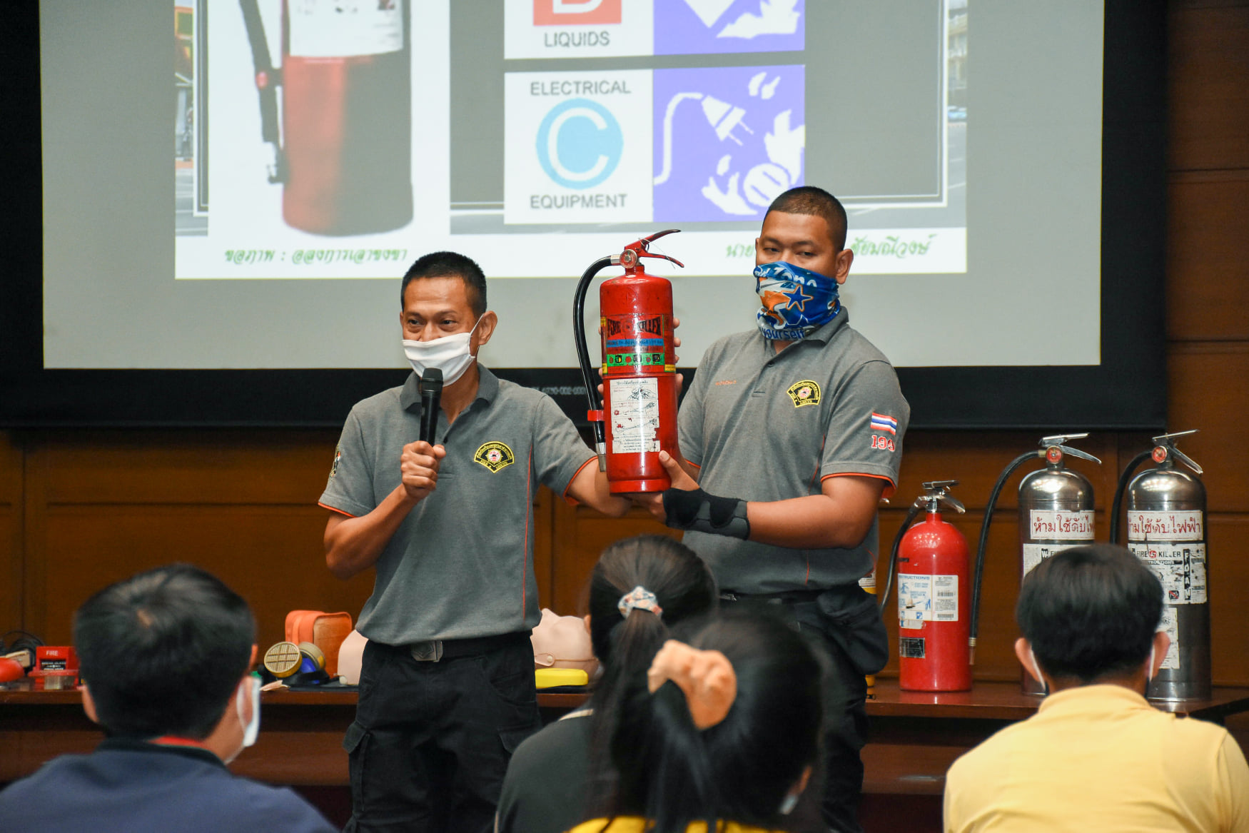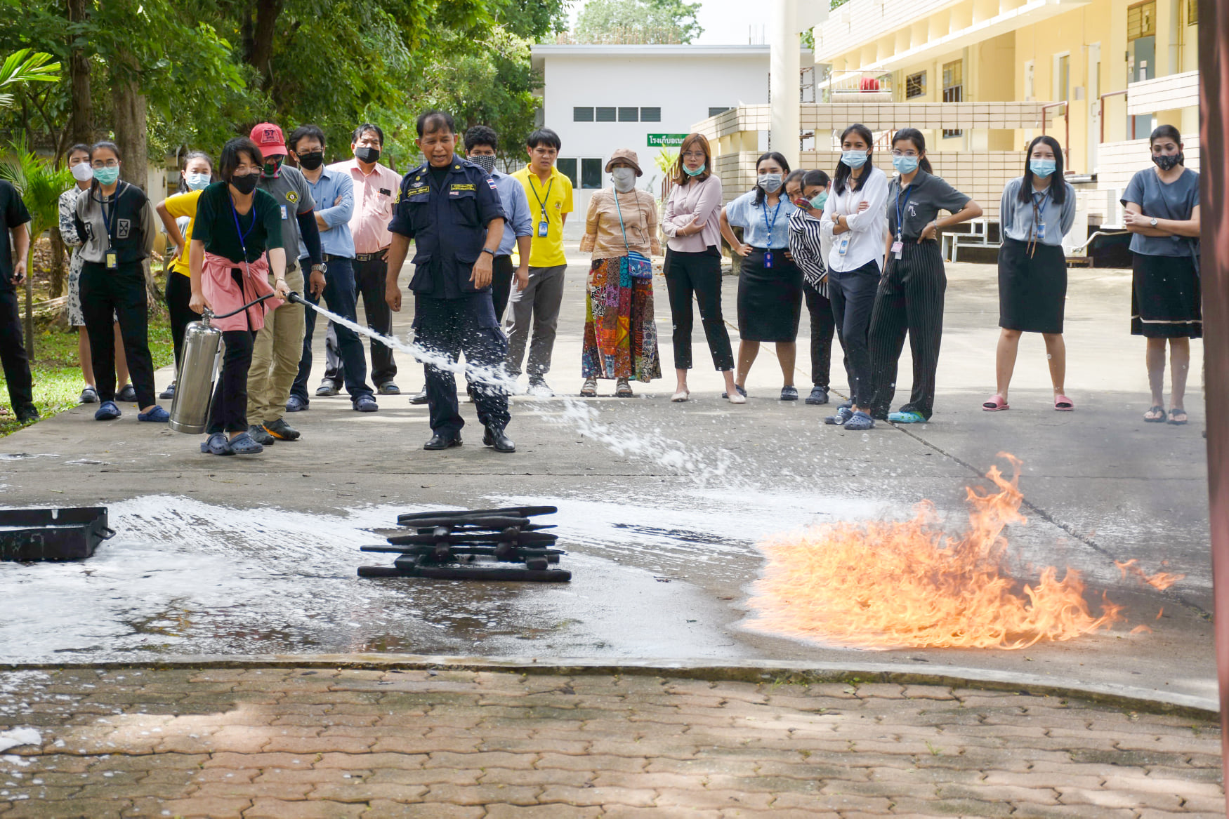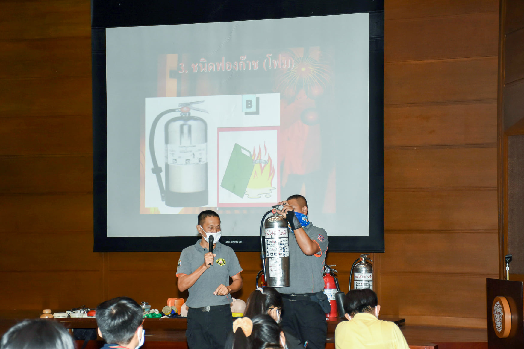 เมื่อวันที่ 27 สิงหาคม 2563 น.สพ.เชาวฤทธิ์ บุญมาทิต ผู้อำนวยการสถาบันสุขภาพสัตว์แห่งชาติ เป็นประธานเปิดการฝึกอบรม หลักสูตร แผนและวิธีการดับเพลิง การหนีไฟ การค้นหา และการช่วยเหลือผู้ประสบภัย ณ ห้องประชุม สถาบันสุขภาพสัตว์แห่งชาติ โดยมี จ.ส.ต.มงคล ศรีสังวาล และเจ้าหน้าที่จากสถานีดับเพลิงและกู้ภัยดุสิต เป็นวิทยากรให้ความรู้เกี่ยวกับสาเหตุของการเกิดเพลิงไหม้ วิธีป้องกันเพลิงไหม้ได้อย่างถูกต้อง การใช้งานอุปกรณ์ถังดับเพลิงประเภทต่างๆ รวมถึงมีทักษะในการใช้อุปกรณ์ดับเพลิงเข้าทำการระงับเหตุเบื้องต้นได้อย่างรวดเร็วและมีประสิทธิภาพ เพื่อลดการสูญเสียทั้งชีวิตและทรัพย์สินจากเหตุเพลิงไหม้