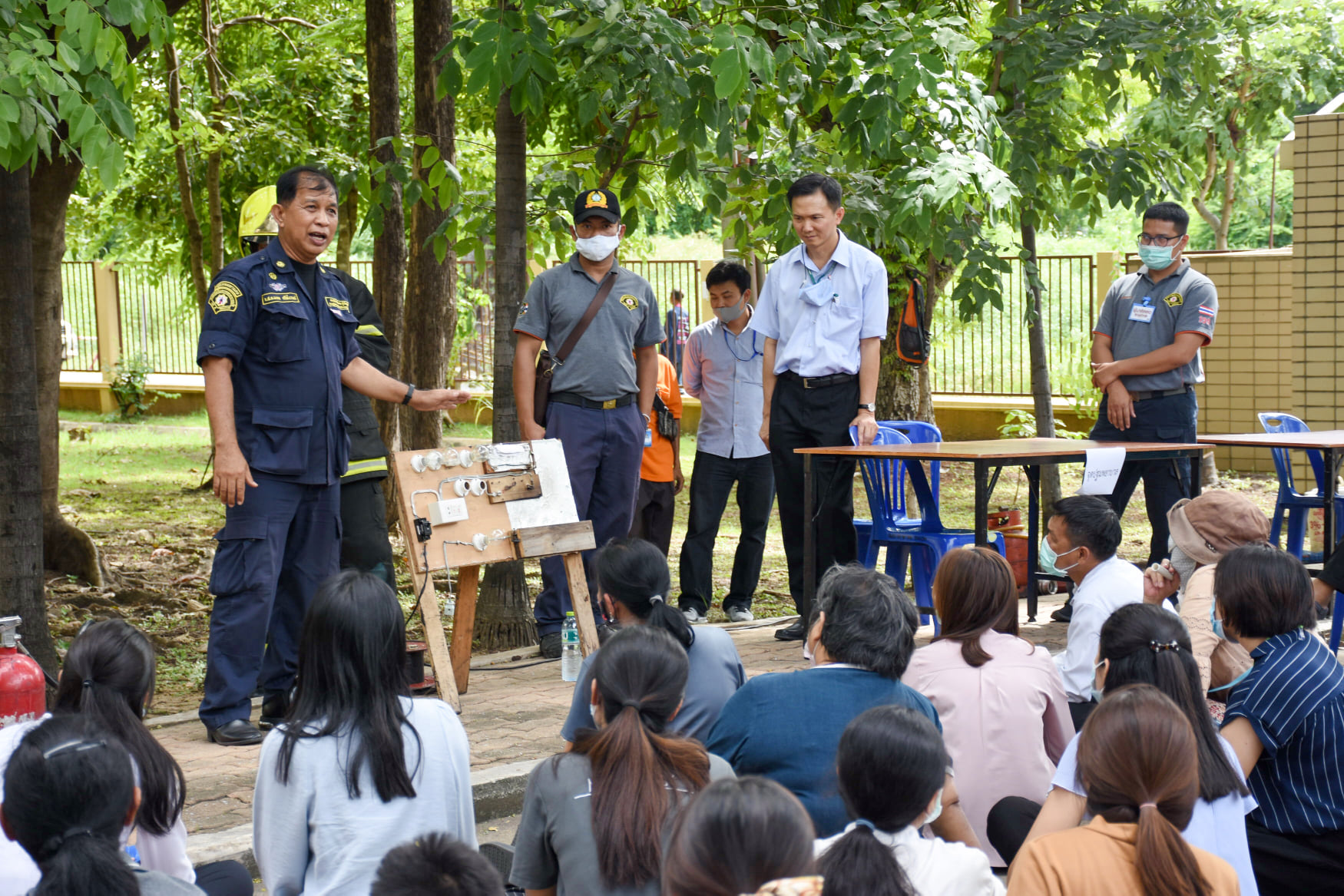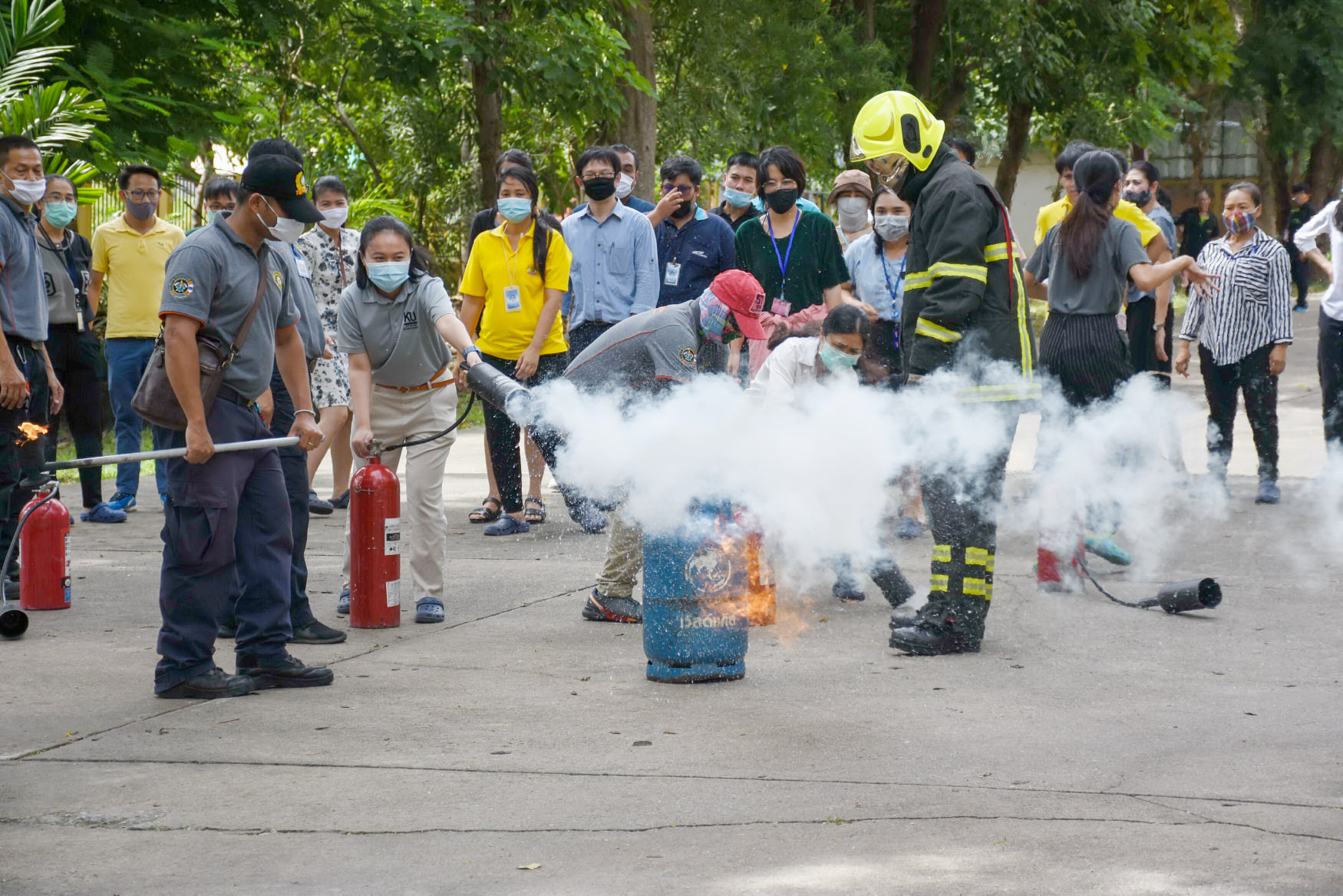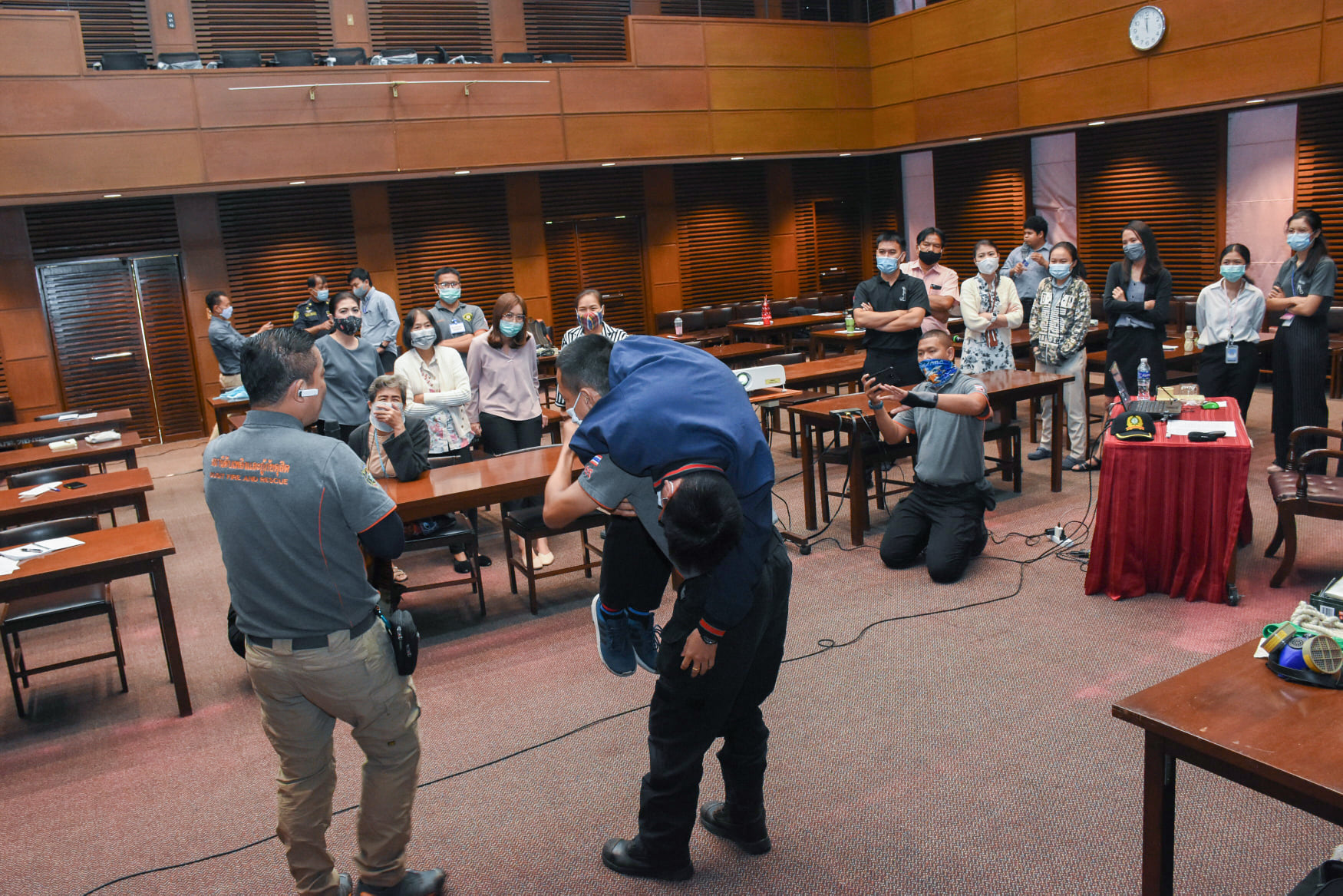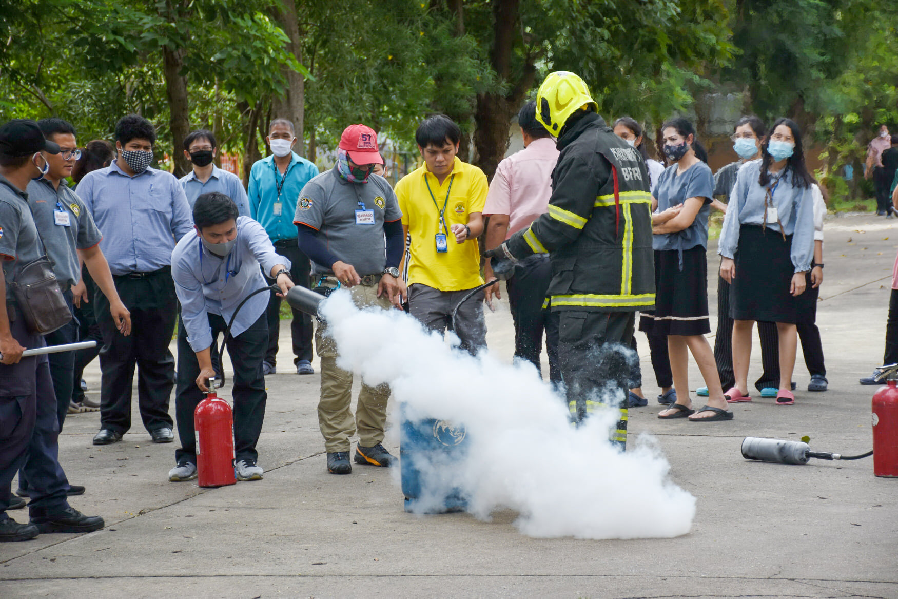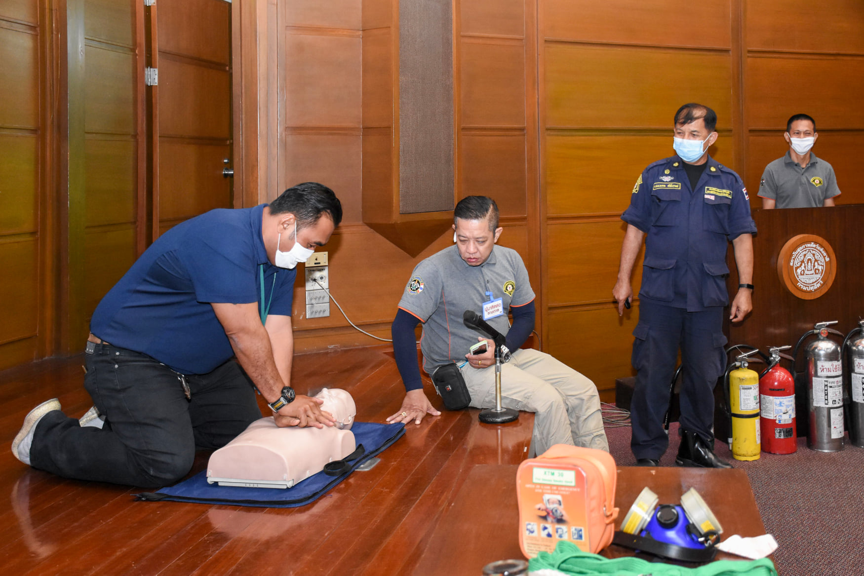 เมื่อวันที่ 27 สิงหาคม 2563 น.สพ.เชาวฤทธิ์ บุญมาทิต ผู้อำนวยการสถาบันสุขภาพสัตว์แห่งชาติ เป็นประธานเปิดการฝึกอบรม หลักสูตร แผนและวิธีการดับเพลิง การหนีไฟ การค้นหา และการช่วยเหลือผู้ประสบภัย ณ ห้องประชุม สถาบันสุขภาพสัตว์แห่งชาติ โดยมี จ.ส.ต.มงคล ศรีสังวาล และเจ้าหน้าที่จากสถานีดับเพลิงและกู้ภัยดุสิต เป็นวิทยากรให้ความรู้เกี่ยวกับสาเหตุของการเกิดเพลิงไหม้ วิธีป้องกันเพลิงไหม้ได้อย่างถูกต้อง การใช้งานอุปกรณ์ถังดับเพลิงประเภทต่างๆ รวมถึงมีทักษะในการใช้อุปกรณ์ดับเพลิงเข้าทำการระงับเหตุเบื้องต้นได้อย่างรวดเร็วและมีประสิทธิภาพ เพื่อลดการสูญเสียทั้งชีวิตและทรัพย์สินจากเหตุเพลิงไหม้