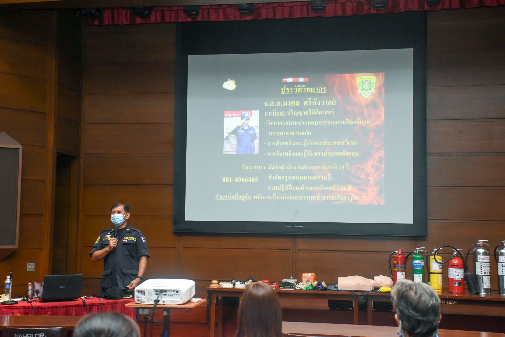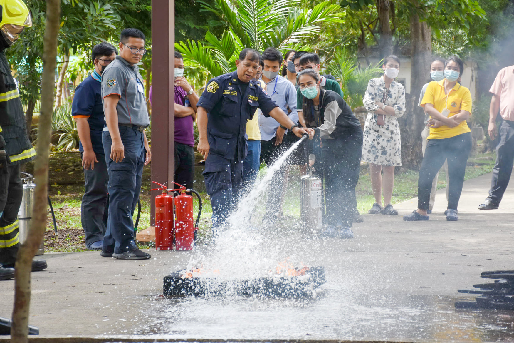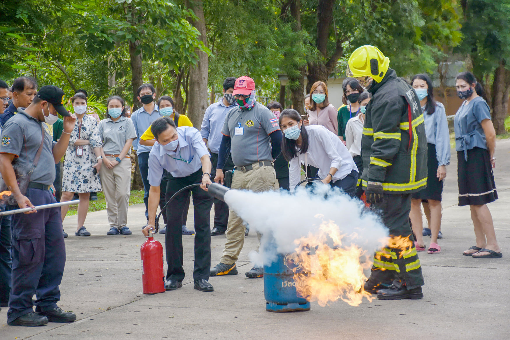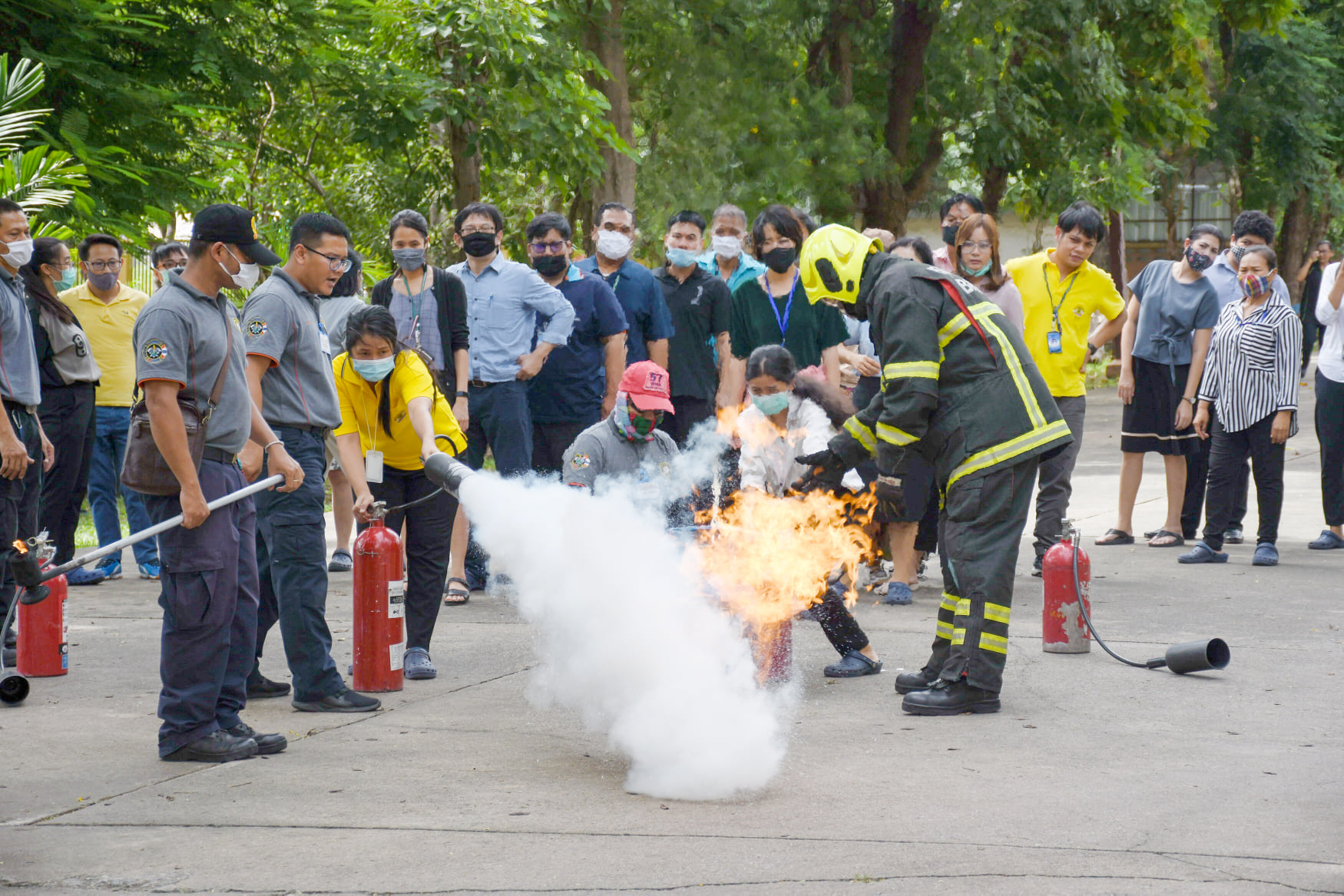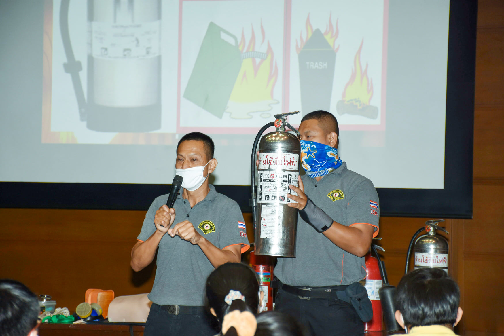 เมื่อวันที่ 27 สิงหาคม 2563 น.สพ.เชาวฤทธิ์ บุญมาทิต ผู้อำนวยการสถาบันสุขภาพสัตว์แห่งชาติ เป็นประธานเปิดการฝึกอบรม หลักสูตร แผนและวิธีการดับเพลิง การหนีไฟ การค้นหา และการช่วยเหลือผู้ประสบภัย ณ ห้องประชุม สถาบันสุขภาพสัตว์แห่งชาติ โดยมี จ.ส.ต.มงคล ศรีสังวาล และเจ้าหน้าที่จากสถานีดับเพลิงและกู้ภัยดุสิต เป็นวิทยากรให้ความรู้เกี่ยวกับสาเหตุของการเกิดเพลิงไหม้ วิธีป้องกันเพลิงไหม้ได้อย่างถูกต้อง การใช้งานอุปกรณ์ถังดับเพลิงประเภทต่างๆ รวมถึงมีทักษะในการใช้อุปกรณ์ดับเพลิงเข้าทำการระงับเหตุเบื้องต้นได้อย่างรวดเร็วและมีประสิทธิภาพ เพื่อลดการสูญเสียทั้งชีวิตและทรัพย์สินจากเหตุเพลิงไหม้