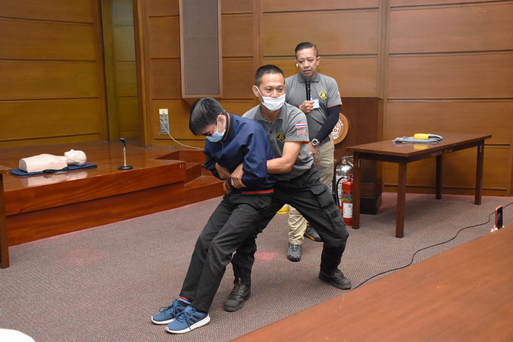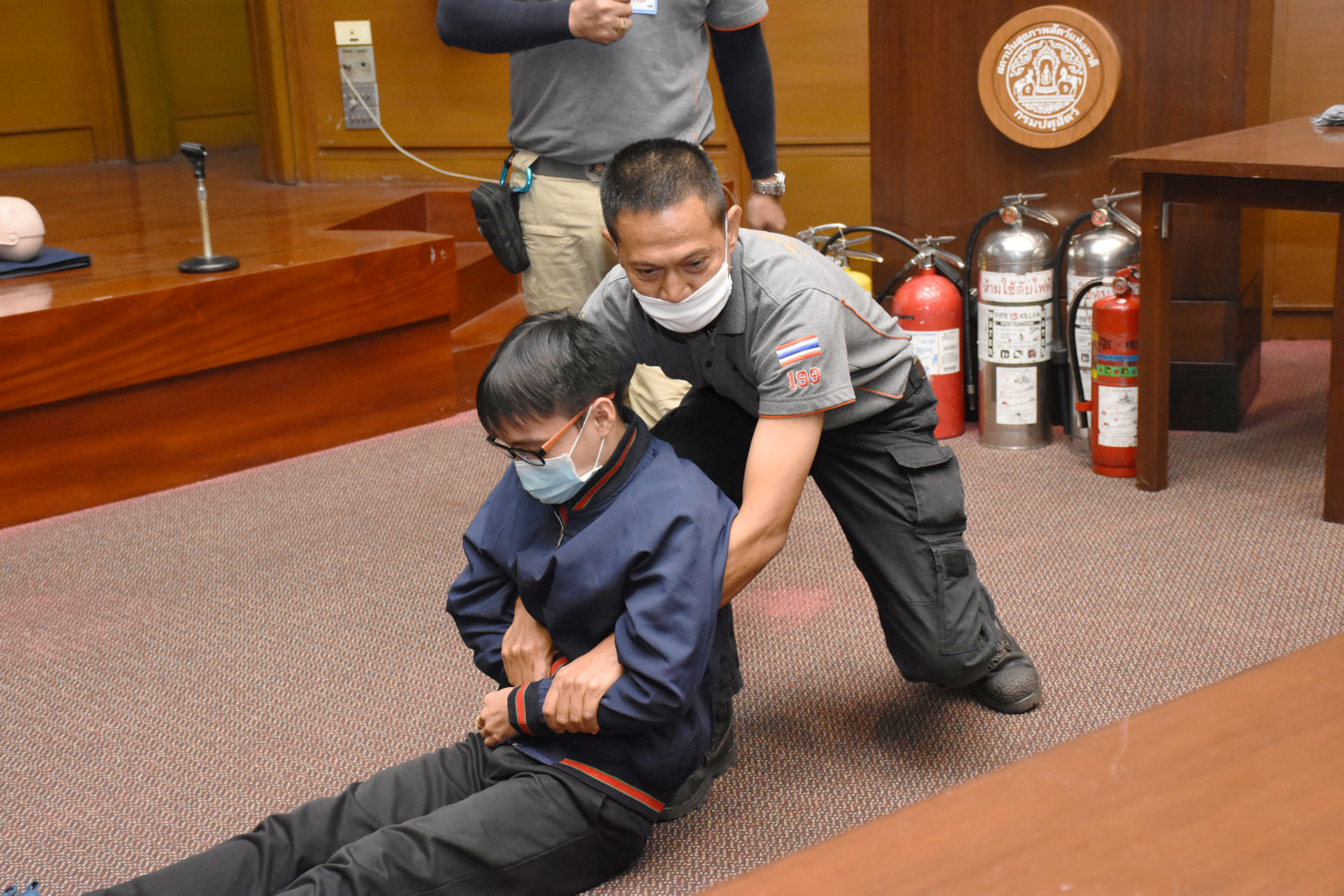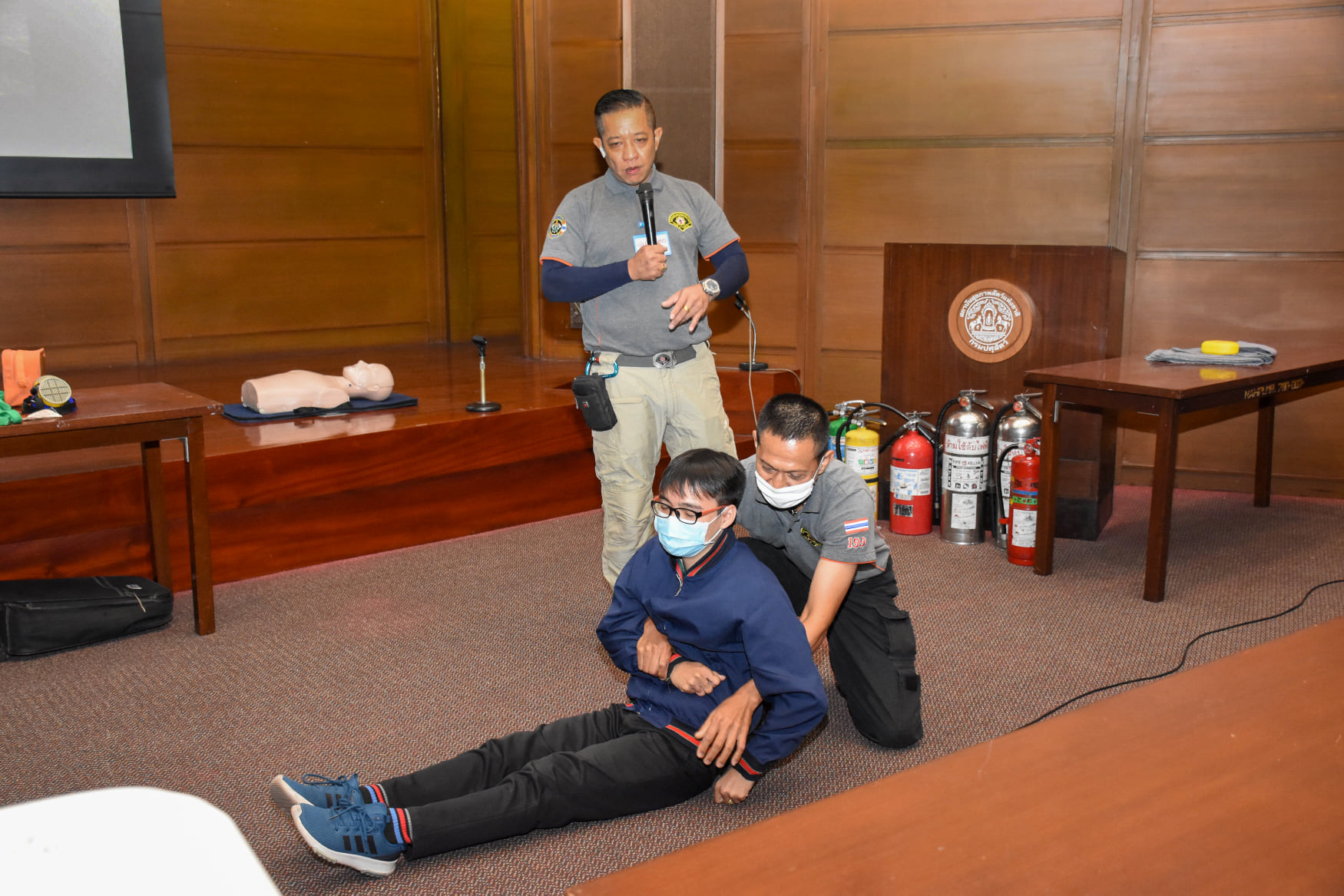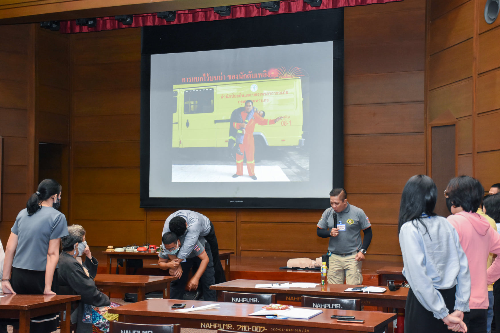 เมื่อวันที่ 27 สิงหาคม 2563 น.สพ.เชาวฤทธิ์ บุญมาทิต ผู้อำนวยการสถาบันสุขภาพสัตว์แห่งชาติ เป็นประธานเปิดการฝึกอบรม หลักสูตร แผนและวิธีการดับเพลิง การหนีไฟ การค้นหา และการช่วยเหลือผู้ประสบภัย ณ ห้องประชุม สถาบันสุขภาพสัตว์แห่งชาติ โดยมี จ.ส.ต.มงคล ศรีสังวาล และเจ้าหน้าที่จากสถานีดับเพลิงและกู้ภัยดุสิต เป็นวิทยากรให้ความรู้เกี่ยวกับสาเหตุของการเกิดเพลิงไหม้ วิธีป้องกันเพลิงไหม้ได้อย่างถูกต้อง การใช้งานอุปกรณ์ถังดับเพลิงประเภทต่างๆ รวมถึงมีทักษะในการใช้อุปกรณ์ดับเพลิงเข้าทำการระงับเหตุเบื้องต้นได้อย่างรวดเร็วและมีประสิทธิภาพ เพื่อลดการสูญเสียทั้งชีวิตและทรัพย์สินจากเหตุเพลิงไหม้