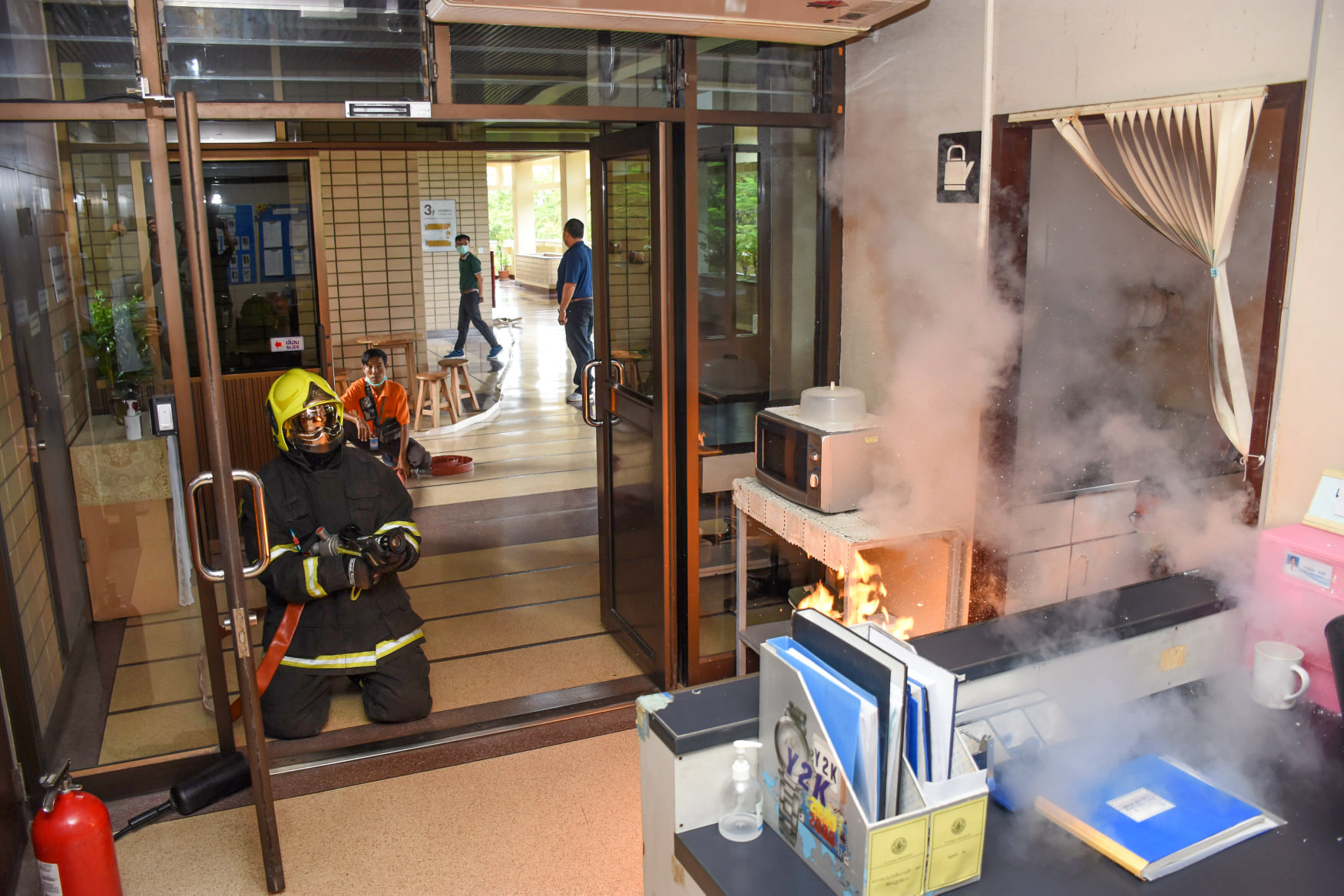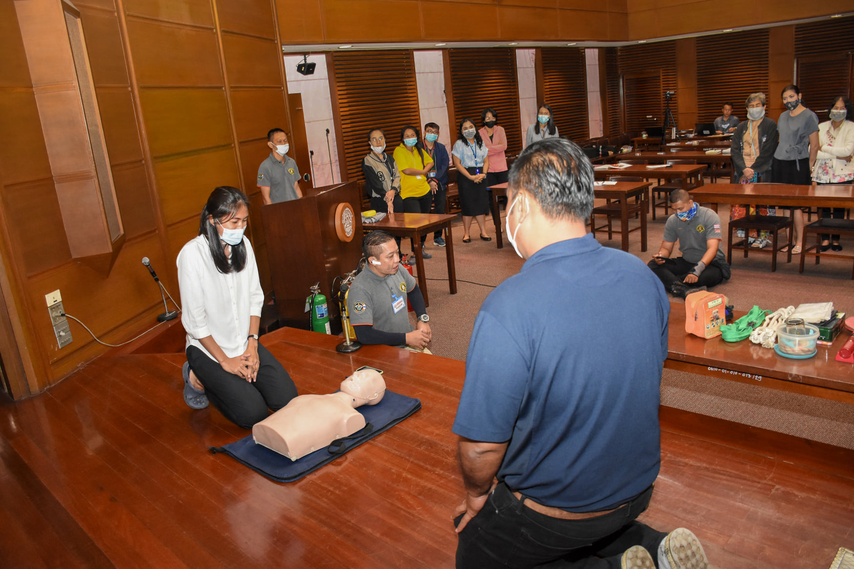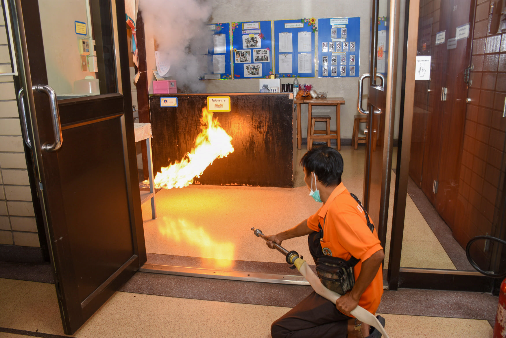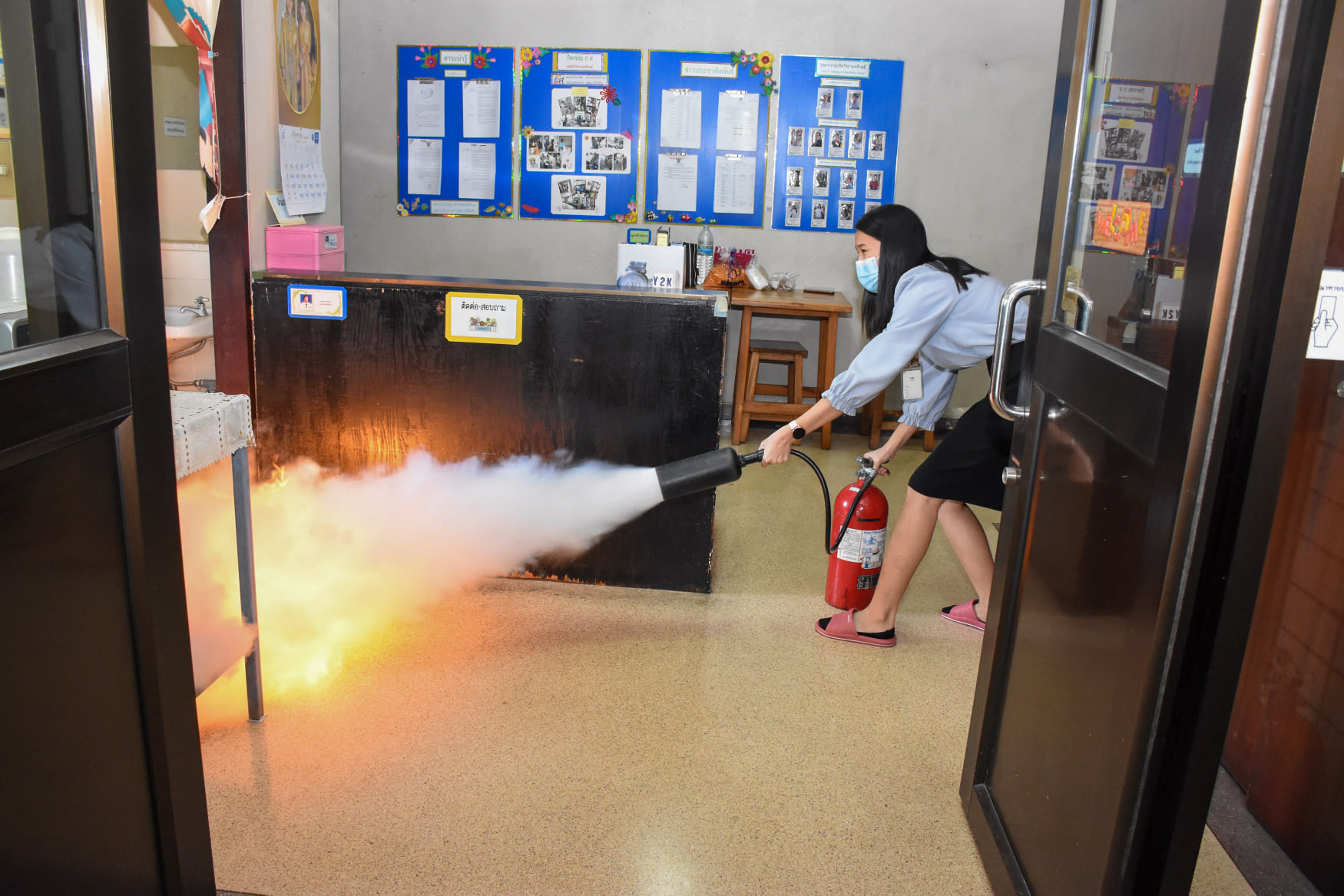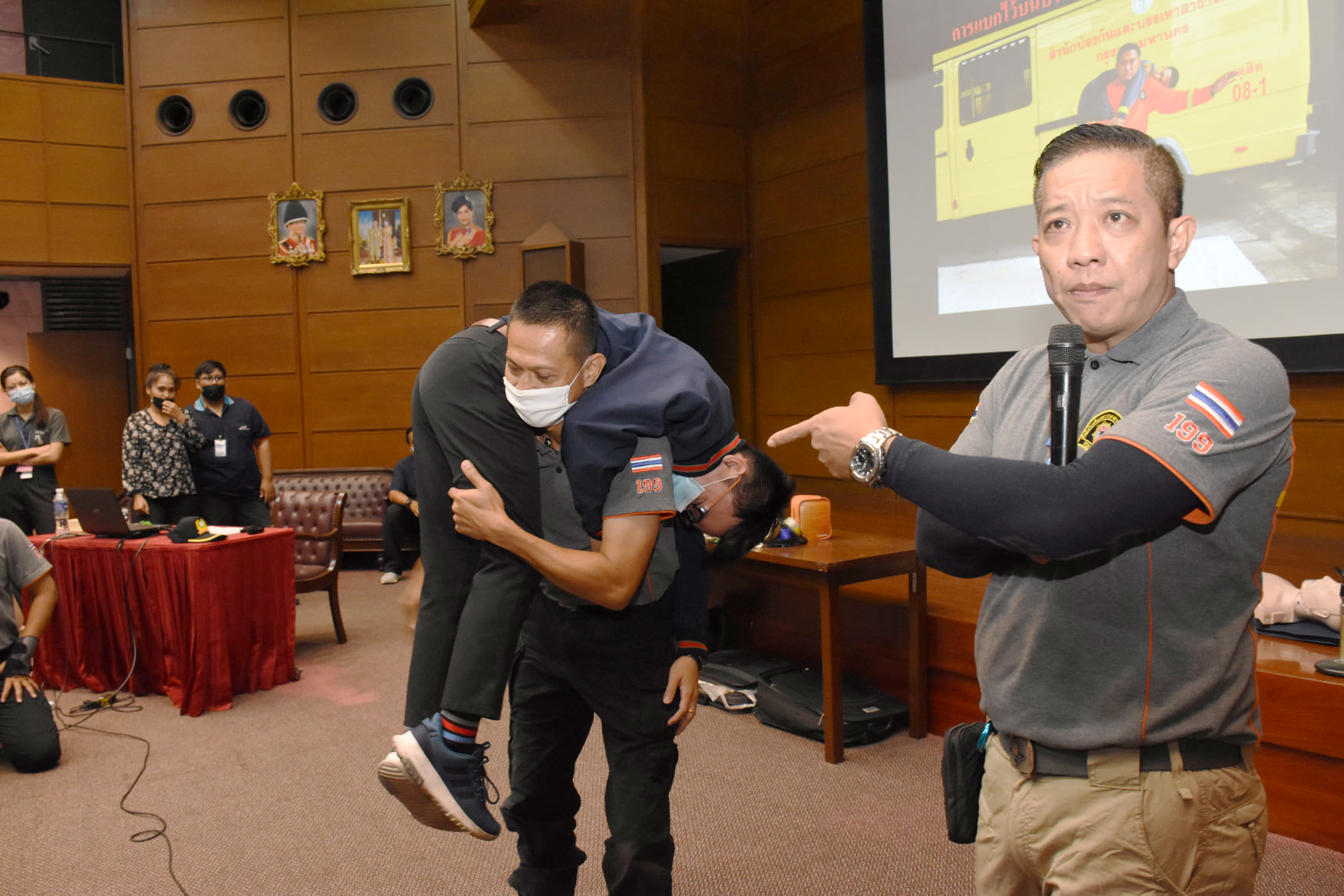 เมื่อวันที่ 27 สิงหาคม 2563 น.สพ.เชาวฤทธิ์ บุญมาทิต ผู้อำนวยการสถาบันสุขภาพสัตว์แห่งชาติ เป็นประธานเปิดการฝึกอบรม หลักสูตร แผนและวิธีการดับเพลิง การหนีไฟ การค้นหา และการช่วยเหลือผู้ประสบภัย ณ ห้องประชุม สถาบันสุขภาพสัตว์แห่งชาติ โดยมี จ.ส.ต.มงคล ศรีสังวาล และเจ้าหน้าที่จากสถานีดับเพลิงและกู้ภัยดุสิต เป็นวิทยากรให้ความรู้เกี่ยวกับสาเหตุของการเกิดเพลิงไหม้ วิธีป้องกันเพลิงไหม้ได้อย่างถูกต้อง การใช้งานอุปกรณ์ถังดับเพลิงประเภทต่างๆ รวมถึงมีทักษะในการใช้อุปกรณ์ดับเพลิงเข้าทำการระงับเหตุเบื้องต้นได้อย่างรวดเร็วและมีประสิทธิภาพ เพื่อลดการสูญเสียทั้งชีวิตและทรัพย์สินจากเหตุเพลิงไหม้