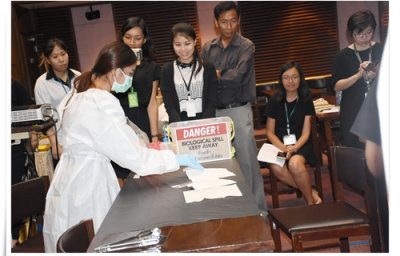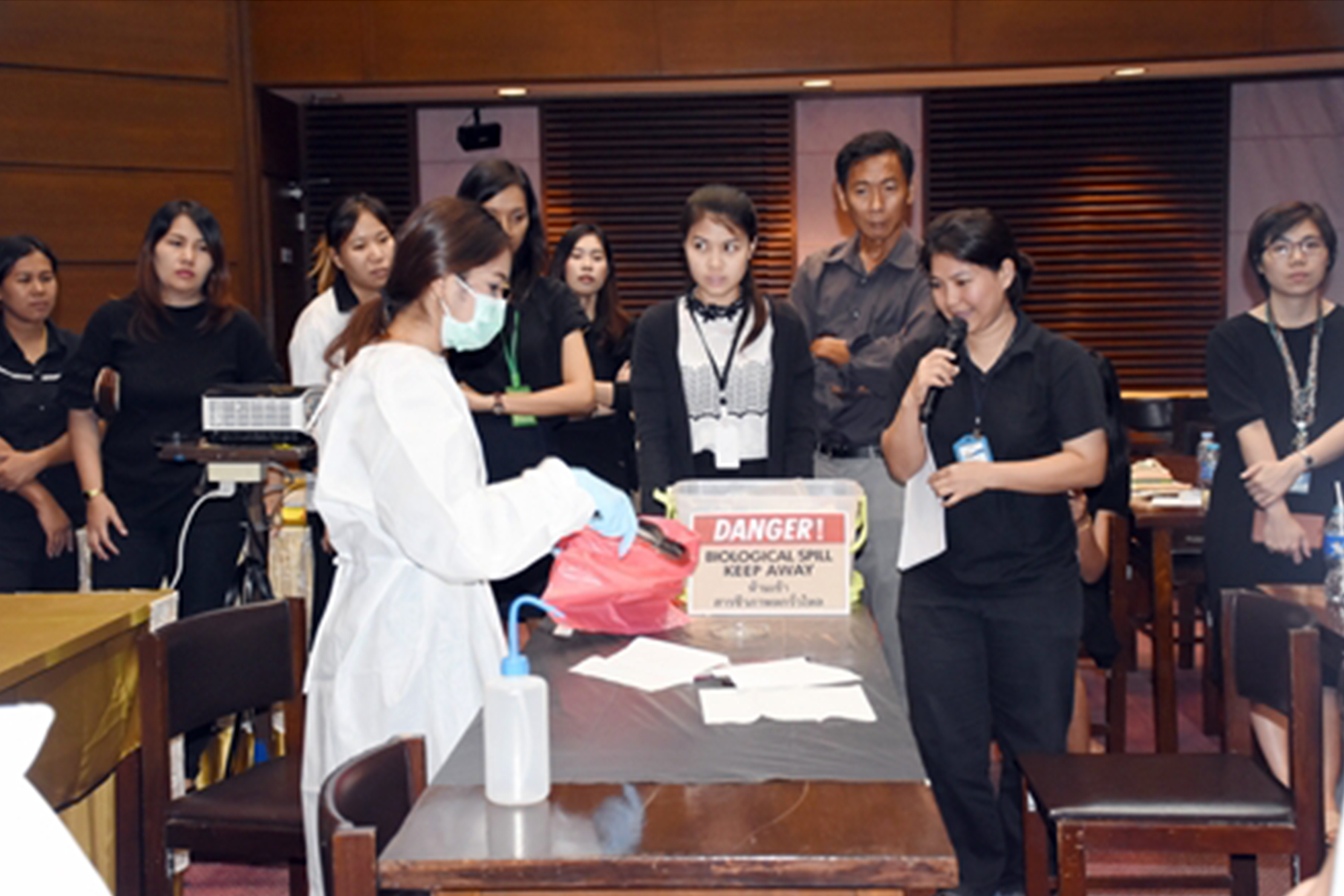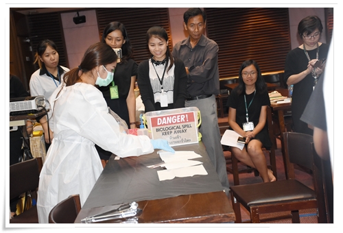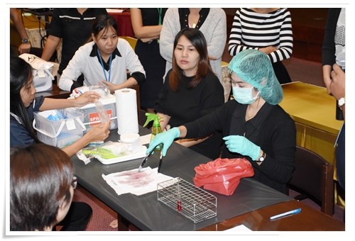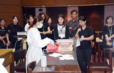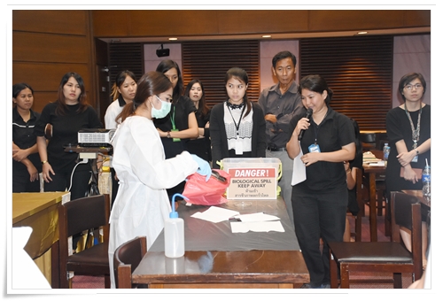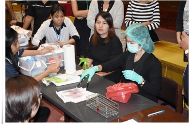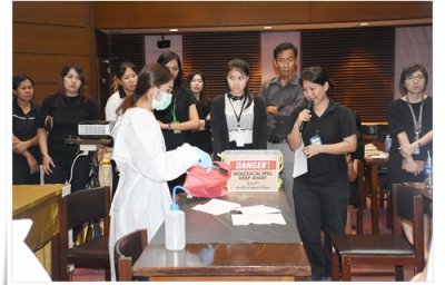 คณะทำงานด้านความปลอดภัยและความมั่นคงทางชีวภาพ สถาบันสุขภาพสัตว์แห่งชาติ ได้จัดอบรมให้แก่บุคลากรในสังกัด เมื่อวันที่ 11 ตุลาคม 2560 ณ ห้องประชุม ดร.ทิม พรรณศิริ ซึ่งบรรยายโดยคณะทำงานฯ ที่ผ่านการอบรมเชิงปฏิบัติการหลักสูตร Training of Trainers ด้าน Biosafety โดยมีหัวข้อดังต่อไปนี้ GLP โดย น.สพ.เอกรินทร์ คงขำ Sample packaging โดย น.สพ.อิสระ สิริกนก PPE โดย น.สพ.พีรวิทย์ บุญปางบรรพ Emergency Response และการฝึกปฏิบัติการใช้ spill kits โดยคุณพนม ใสยจิตร และคุณภมรญา ดีแก้ว ทั้งนี้มีผู้เข้ารับการอบรมทั้งสื้น 26 คน