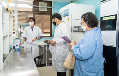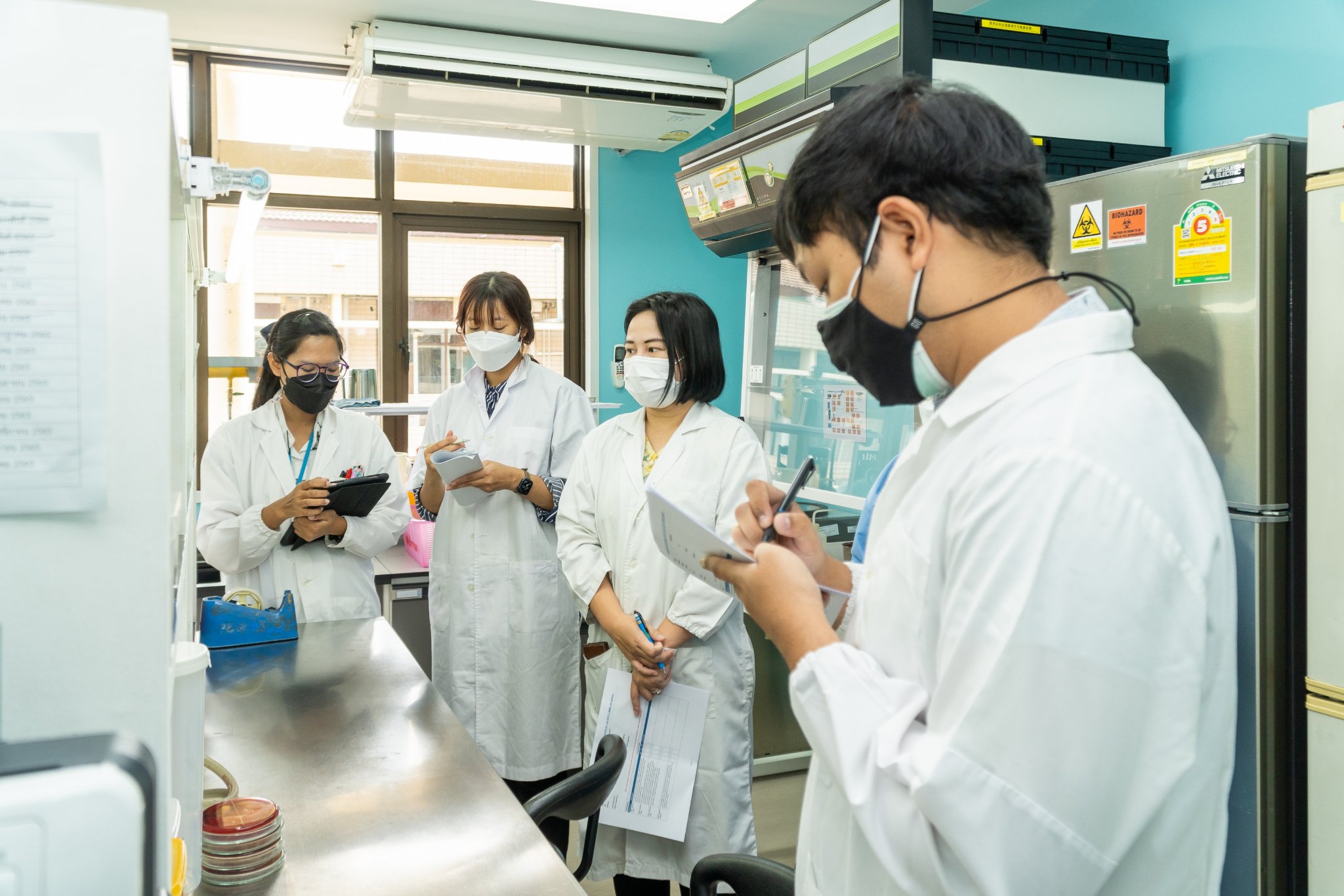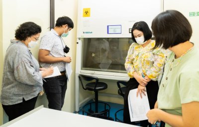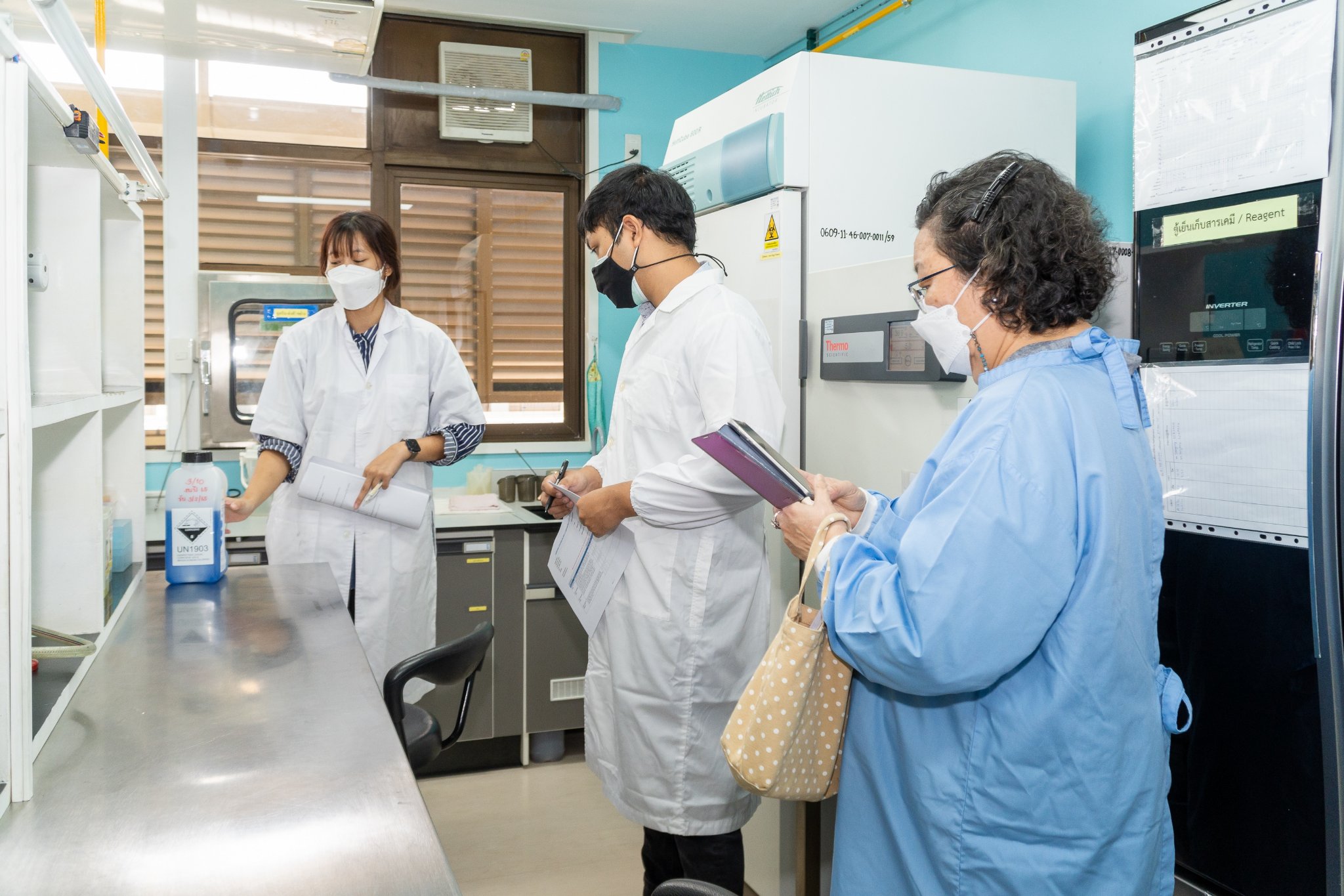 เมื่อวันที่ 6 กรกฎาคม 2565 สพ.ญ.วาทินี เสาเวียง รองประธานคณะทำงานความปลอดภัยและการรักษาความปลอดภัยทางชีวภาพ ให้การต้อนรับคณะผู้ตรวจประเมินห้องปฏิบัติการและติดตามผล Laboratory Mapping Tool (LMT) ประจำปีพ.ศ. 2563 – 2564 จากหน่วยวิจัยโรคเขตร้อนมหิดล-อ๊อกฟอร์ด (MORU) คณะเวชศาสตร์เขตร้อน มหาวิทยาลัยมหิดล ภายใต้โครงการเสริมสร้างห้องปฏิบัติการด้านสัตวแพทย์ (Lao PDR-Cambodia-Thailand Veterinary Laboratory Capacity Building Project – LACATH4)โดยมีผู้เข้าร่วมประชุม ประกอบด้วย 1. สพ.ญ.วริษา เกตุพันธุ์ เลขานุการคณะทำงานความปลอดภัยและการรักษาความปลอดภัยทางชีวภาพ และผู้แทนห้องปฏิบัติการแบคทีเรียและเชื้อรา 2. คุณพนม ใสยจิตร์ คณะทำงานความปลอดภัยและการรักษาความปลอดภัยทางชีวภาพ 3. สพ.ญ.กฤดากร วงษ์ทองสาลี คณะทำงานความปลอดภัยและการรักษาความปลอดภัยทางชีวภาพ 4. คุณลัดดาวัลย์ โพธิพันธุ์ คณะทำงานความปลอดภัยและการรักษาความปลอดภัยทางชีวภาพ และผู้แทนห้องรับตัวอย่าง กลุ่มระบาดวิทยา 5. คุณอรรัมภา พิสิฐวรกุล ผู้ช่วยเลขานุการคณะทำงานความปลอดภัยและการรักษาความปลอดภัยทางชีวภาพ 6. น.สพ.ดร.กิตติชัย อุ่นจิต หัวหน้าห้องปฏิบัติการปรสิตวิทยา 7. คุณฉัตรสุดา สุระภี ผู้แทนห้องปฏิบัติการเลปโตสไปโรสิส และ 8. สพ.ญ.ชญานี เจนพานิชย์ ผู้แทนกลุ่มพัฒนาระบบคุณภาพทางห้องปฏิบัติการ คณะผู้ตรวจประเมิน Laboratory Operation Mentoring Visit ประกอบด้วย 1. สพ.ญ.สมใจ กมลศิริพิชัยพร MORU consultant and Liaison 2. คุณสร้อยรัชนีกร เรือนใจมั่น MORU Safety Manager 3. คุณพีระพล มารุ่งเรือง MORU Safety Officer ในครั้งนี้ คณะผู้ตรวจประเมินได้เข้าตรวจห้องปฏิบัติการที่ขอการรับรองห้องปฏิบัติการชีวนิรภัยระดับ 2 ตลอดจนหารือเกี่ยวกับการเสริมสร้างความปลอดภัยและความมั่นคงทางชีวภาพในห้องปฏิบัติการ