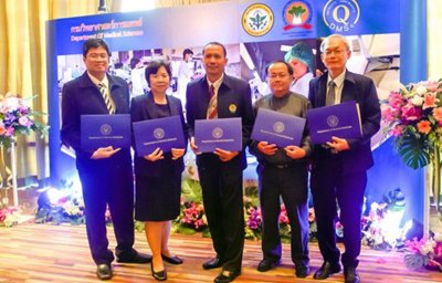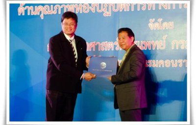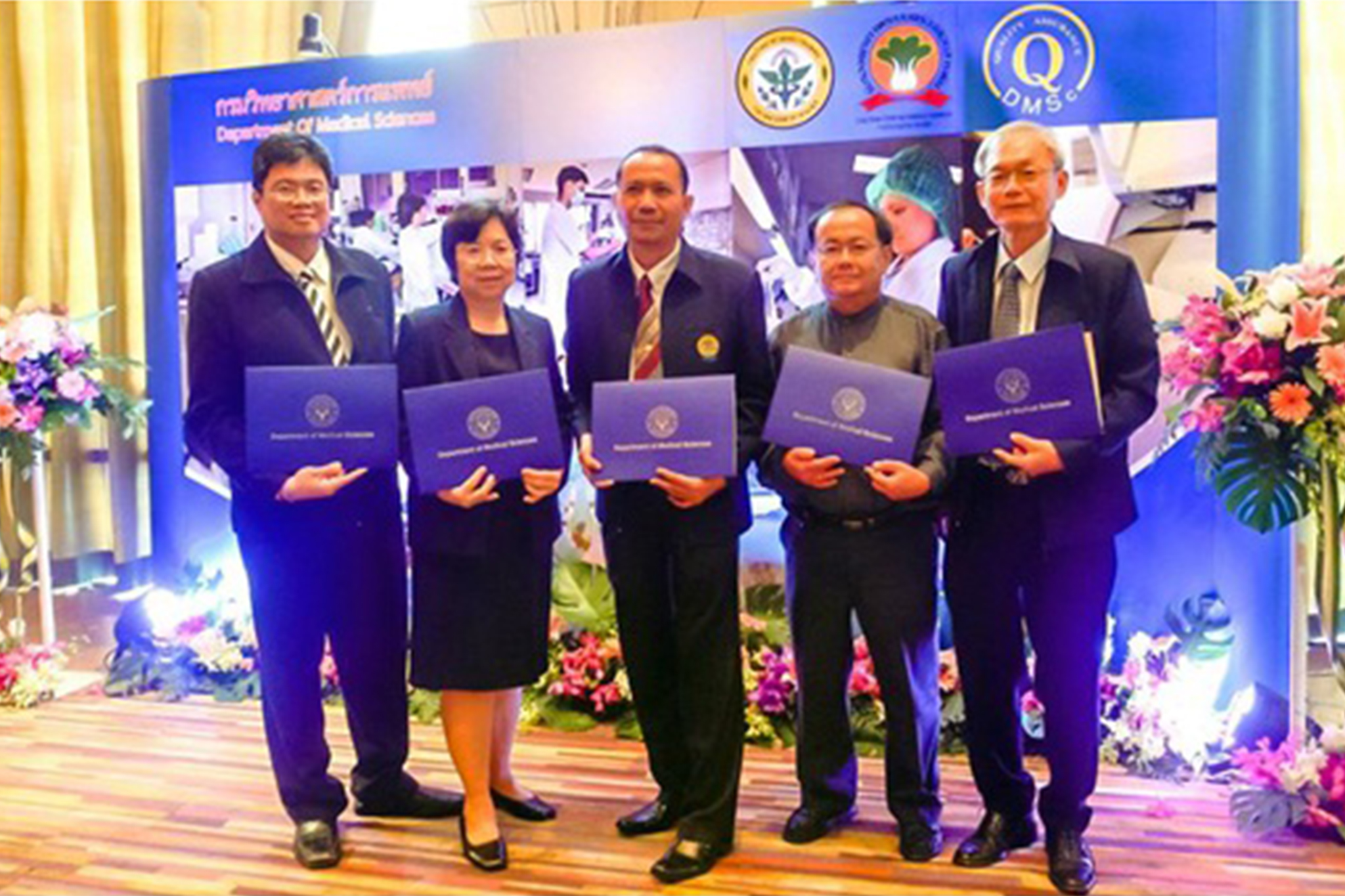 เมื่อวันที่ 22 สิงหาคม 2556 สัตวแพทย์หญิงลัดดา ตรงวงศา (ที่ 2 จากซ้าย) รักษาการในตำแหน่งผู้เชี่ยวชาญด้านวิจัยโรคสัตว์เล็กและสัตว์ใหญ่ / หัวหน้ากลุ่มพัฒนาระบบคุณภาพห้องปฏิบัติการ สถาบันสุขภาพสัตว์แห่งชาติ พร้อมด้วยนายสัตวแพทย์ชัยวัธน์ วิทูรกูล (ที่ 4 จากซ้าย) ผู้อำนวยการศูนย์วิจัยและพัฒนาการสัตวแพทย์ภาคเหนือตอนบน (ลำปาง) นายสัตวแพทย์พิพล สุขสายไทยชะนะ (ที่ 5 จากซ้าย) ผู้อำนวยการศูนย์วิจัยและพัฒนาการสัตวแพทย์ภาคใต้ (นครศรีธรรมราช) นายสัตวแพทย์ร่มพฤกษ์ อุดล (ที่ 1 จากซ้าย) นายสัตวแพทย์ชำนาญการพิเศษ ศูนย์อ้างอิงโรคปากและเท้าเปื่อยภูมิภาคเอเชียตะวันออกเฉียงใต้ และนายนิมิตร เชื้อเงิน (ที่ 3 จากซ้าย) นักวิทยาศาสตร์ชำนาญการพิเศษ ศูนย์วิจัยและพัฒนาการสัตวแพทย์ภาคตะวัน ออก (ชลบุรี) รับรางวัลความเป็นเลิศด้านคุณภาพห้องปฏิบัติการทางการแพทย์และสาธารณสุข ด้านมาตรฐานสากล ISO/IEC 17025 ณ โรงแรมคอนราด กทม. จัดโดยกรมวิทยาศาสตร์การแพทย์ กระทรวงสาธารณสุข ได้รับเกียรติจากนายพสิษฐ์ ศักดาณรงค์ ที่ปรึกษารัฐมนตรีว่าการกระทรวงสาธารณสุข เป็นผู้มอบรางวัล การมอบรางวัลครั้งนี้สืบเนื่องจากแผนงานพัฒนาความเป็นเลิศด้านคุณภาพห้องปฏิบัติการทางการแพทย์และสาธารณสุข เดินหน้านโยบาย Medical Hub ส่งเสริมการพัฒนาคุณภาพห้องปฏิบัติการทางการแพทย์และสาธารณสุขของประเทศให้มีศักยภาพพร้อมมอบสุดยอดรางวัลระดับเพชร (Star of Diamond) ให้แก่ห้องปฏิบัติการที่ผ่านการรับรองยาวนานที่สุดมากกว่า 11 ปี 4 แห่ง และรางวัลความเป็นเลิศด้านคุณภาพห้องปฏิบัติการทางการแพทย์และสาธารณสุข แบ่งเป็น 4 ด้าน ได้แก่ (1) ด้านมาตรฐานสากล ISO 15189 (2) ด้านมาตรฐานสากล ISO/IEC 17025 (3) ด้านระบบตรวจสอบสารพิษตกค้างในผักสด/ผลไม้สด และ (4) ด้านตรวจสุขภาพคนหางาน โดยปีนี้มีหน่วยงานที่ได้รับรางวัลจำนวน 242 แห่ง โดยหน่วยงานที่ดำเนินงานมากกว่า 10 ปีขึ้นไปได้รับรางวัลระดับเพชร จำนวน 54 แห่ง หน่วยงานที่มีการดำเนินการตั้งแต่ 8 ปีขึ้นไปได้รับรางวัลระดับทอง จำนวน 60 แห่ง และหน่วยงานที่มีการดำเนินงานตั้งแต่ 6 ปีขึ้นไปได้รับรางวัลระดับเงิน จำนวน 124 แห่ง ทั้งนี้ห้องปฏิบัติการชันสูตรโรคของสถาบันสุขภาพสัตว์แห่งชาติ ศูนย์วิจัยและพัฒนาการสัตวแพทย์ส่วนภูมิภาค (7 ศูนย์) และศูนย์อ้างอิงโรคปากและเท้าเปื่อยภูมิภาคเอเชียตะวันออกเฉียงใต้ ได้รับการรับรองระบบคุณภาพห้องปฏิบัติการ ISO/IEC 17025 ตั้งแต่ปี พ.ศ.2551 เป็นต้นมา รวมประมาณ 100 ขอบข่าย และมีแผนขอรับรองขอบข่ายใหม่ๆ อย่างต่อเนื่อง