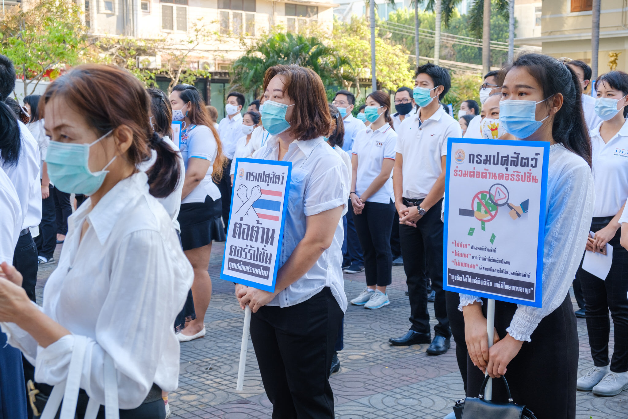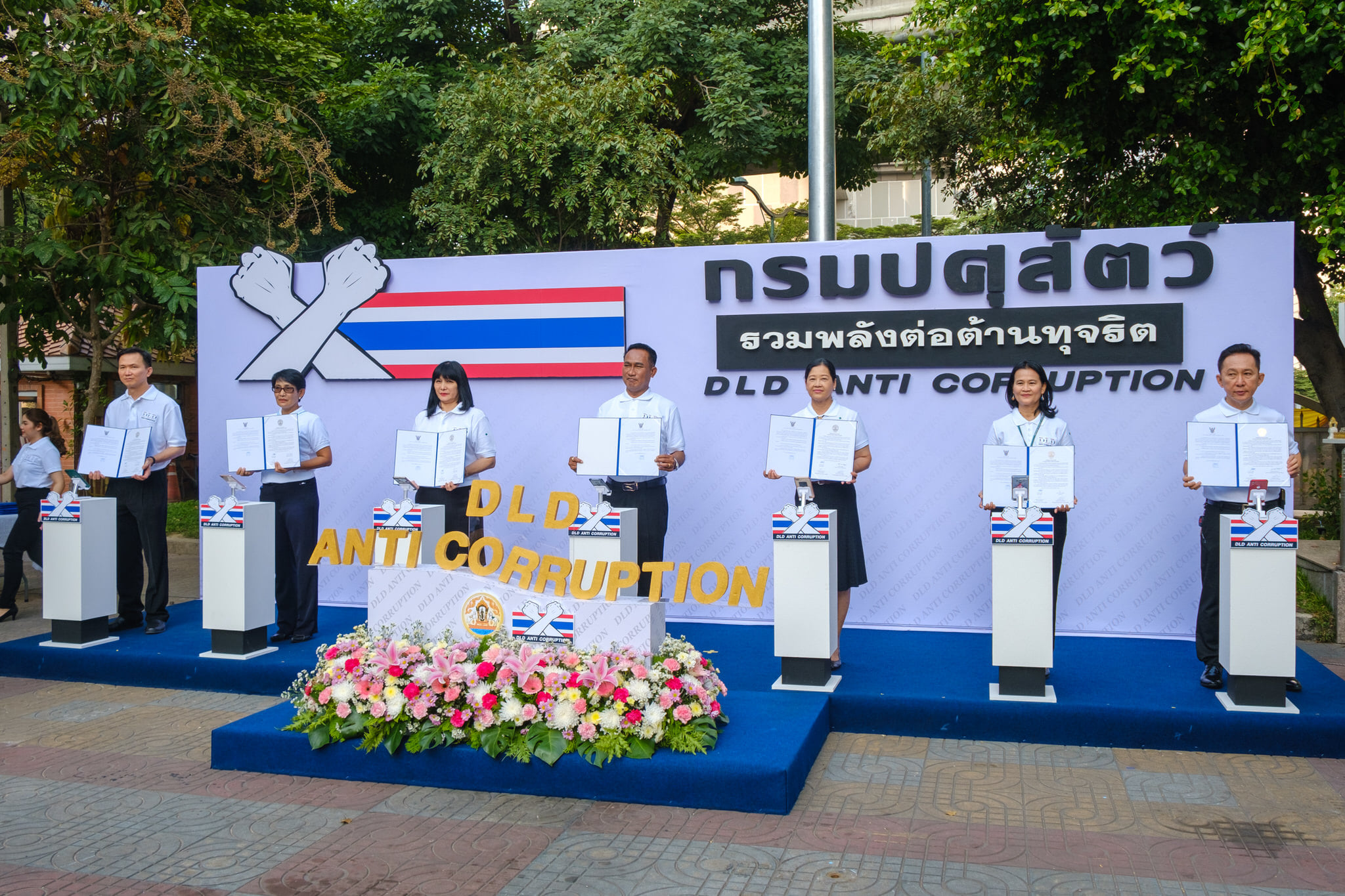 เมื่อวันที่ 9 ธันวาคม 2563 สพ.ญ.ดร.พัชรี ทองคำคูณ ผู้อำนวยการสถาบันสุขภาพสัตว์แห่งชาติ และเจ้าหน้าที่ ได้เข้าร่วมกิจกรรมต่อต้านการทุจริตและประพฤติมิชอบของกรมปศุสัตว์ ปี 2564 โดยมี นายสัตวแพทย์สรวิศ ธานีโต อธิบดีกรมปศุสัตว์ เป็นประธาน นายสัตวแพทย์สมชวน รัตนมังคลานนท์ รองอธิบดีกรมปศุสัตว์ หัวหน้าศูนย์ปฏิบัติการต่อต้านการทุจริต พร้อมด้วยรองอธิบดีกรมปศุสัตว์ ผู้อำนวยการสำนัก/กอง ปศุสัตว์เขต 1-9 และเจ้าหน้าที่กรมปศุสัตว์ ประกาศเจตจำนงสุจริตจะปฏิบัติหน้าที่และบริหารหน่วยงานอย่างซื่อสัตย์ สุจริตโปร่งใสและเป็นธรรมตามหลักธรรมาภิบาล และมอบนโยบายต่อต้านการทุจริตและประพฤติมิชอบของกรมปศุสัตว์ ปี 2564 (LVE ทั่วประเทศ) จากนั้น อธิบดีกรมปศุสัตว์ มอบโล่ห์รางวัลและประกาศนียบัตรกับบุคคลและหน่วยงาน 1. รางวัลผู้ประพฤติตนชอบด้วยความซื่อสัตย์สุจริต ประจำปี พ.ศ.2563 จำนวน 1 ท่าน 2. รางวัลยกย่องผู้มีคุณธรรมจริยธรรมดีเด่น ประจำปี พ.ศ.2563 จำนวน 4 ท่าน 3. ประกาศนียบัตรสำหรับหน่วยงานที่ผ่านการประเมินระดับคุณธรรมความโปร่งใสในการ ดำเนินงานระดับหน่วยงานในกรมปศุสัตว์ประจำปี พ.ศ.2563 จำนวน 16 หน่วยงาน ซึ่งสถาบันสุขภาพสัตว์แห่งชาติ ได้รับรางวัลด้วย และมีการลงนามในบันทึกข้อตกลงความร่วมมือในการป้องกันและการต่อต้านการทุจริต เวลา 07.30 - 10.00 น. ณ ลานจอดรถ กรมปศุสัตว์ พญาไท กรุงเทพมหานคร