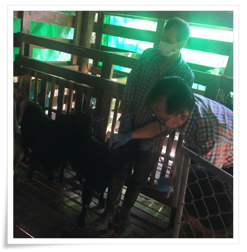 เมื่อวันที่ 6 ธันวาคม 2561 นายสัตวแพทย์บรรจง จงรักษ์วัฒนา ผู้อำนวยการสถาบันสุขภาพสัตว์แห่งชาติ ประธานคณะทำงานดูแลสุขภาพแพะในโครงการพระราชดำริ ออกปฏิบัติงานในพื้นที่ของมูลนิธิชัยพัฒนา โครงการเลี้ยงแพะแบล็คเบงกอล ณ ค่ายพญาเม็งราย จังหวัดเชียงราย พร้อมด้วยสัตวแพทย์หญิง ดร.พัชรี ทองคำคูณ ผู้อำนวยการศูนย์วิจัยและพัฒนาการสัตว์แพทย์ภาคเหนือตองบน (ลำปาง) นายนพพร มหากันธา ปศุสัตว์จังหวัดเชียงราย พร้อมด้วยผู้อำนวยการศูนย์วิจัยและพัฒนาอาหารสัตว์เชียงราย ผู้อำนวยการส่วนสุขภาพสัตว์สำนักงานปศุสัตว์เขต 5 เจ้าหน้าที่กรมปศุสัตว์ และเจ้าหน้าที่โครงการฯ ได้ร่วมกันปรึกษาหารือเพื่อวางแผนการดูแลสุขภาพแพะในโครงการฯ พร้อมทั้งรักษาแพะป่วยและให้มีการติดตาม ตรวจสอบแพะในโครงการฯ ที่ได้พระราชทานให้แก่เกษตรกรไปเลี้ยงในพื้นที่ต่างๆ ตลอดจนให้มีการประเมินการดูแลรักษา การจัดการสุขาภิบาลในทุกมิติ เป็นระยะๆ ต่อไป