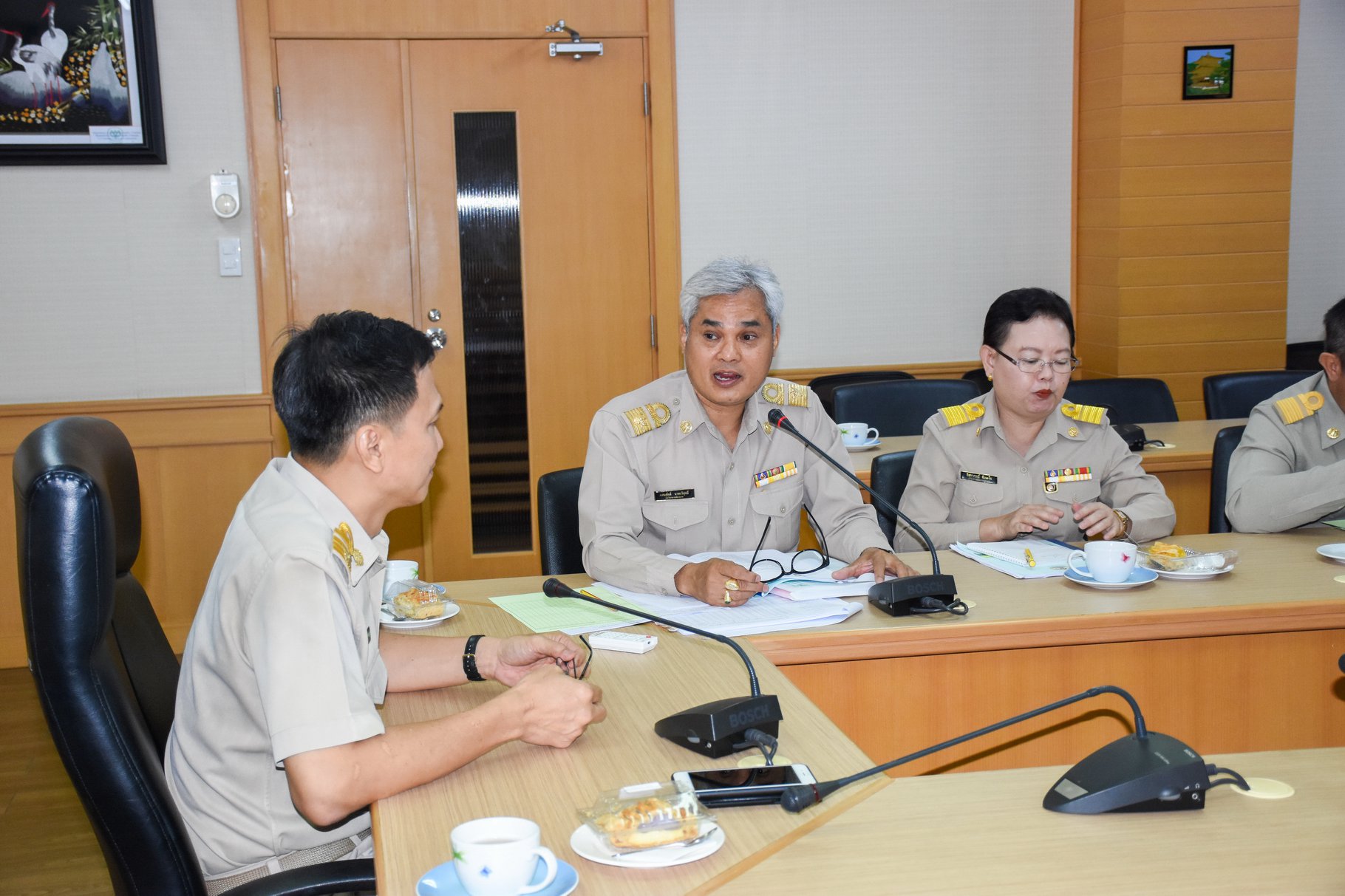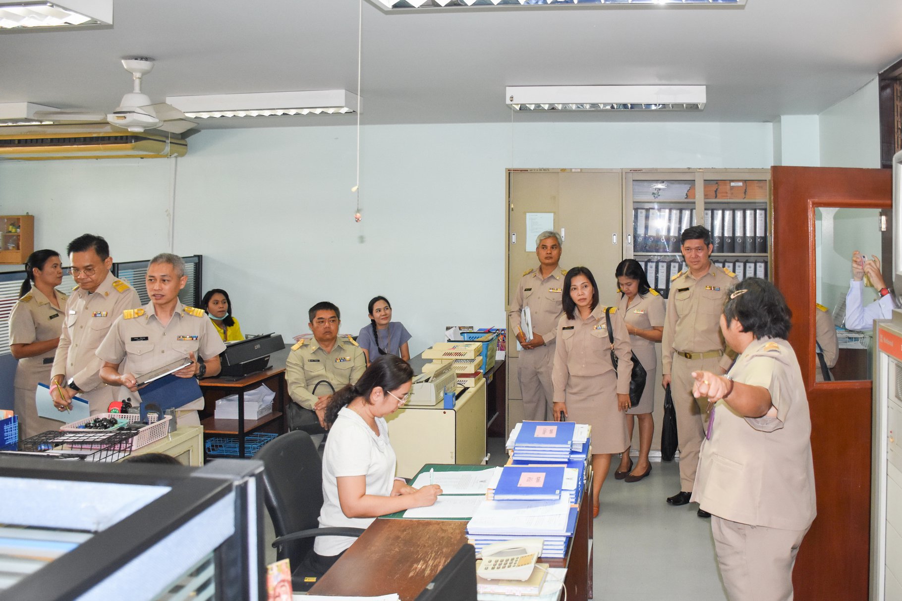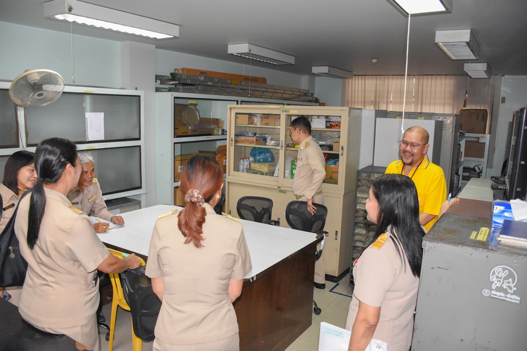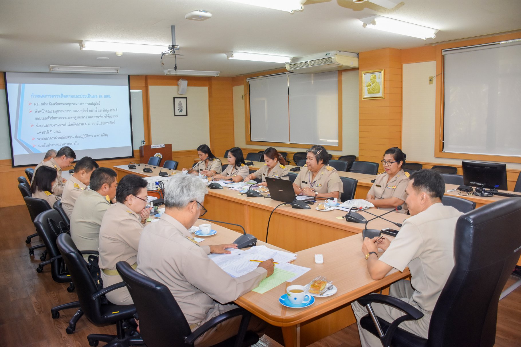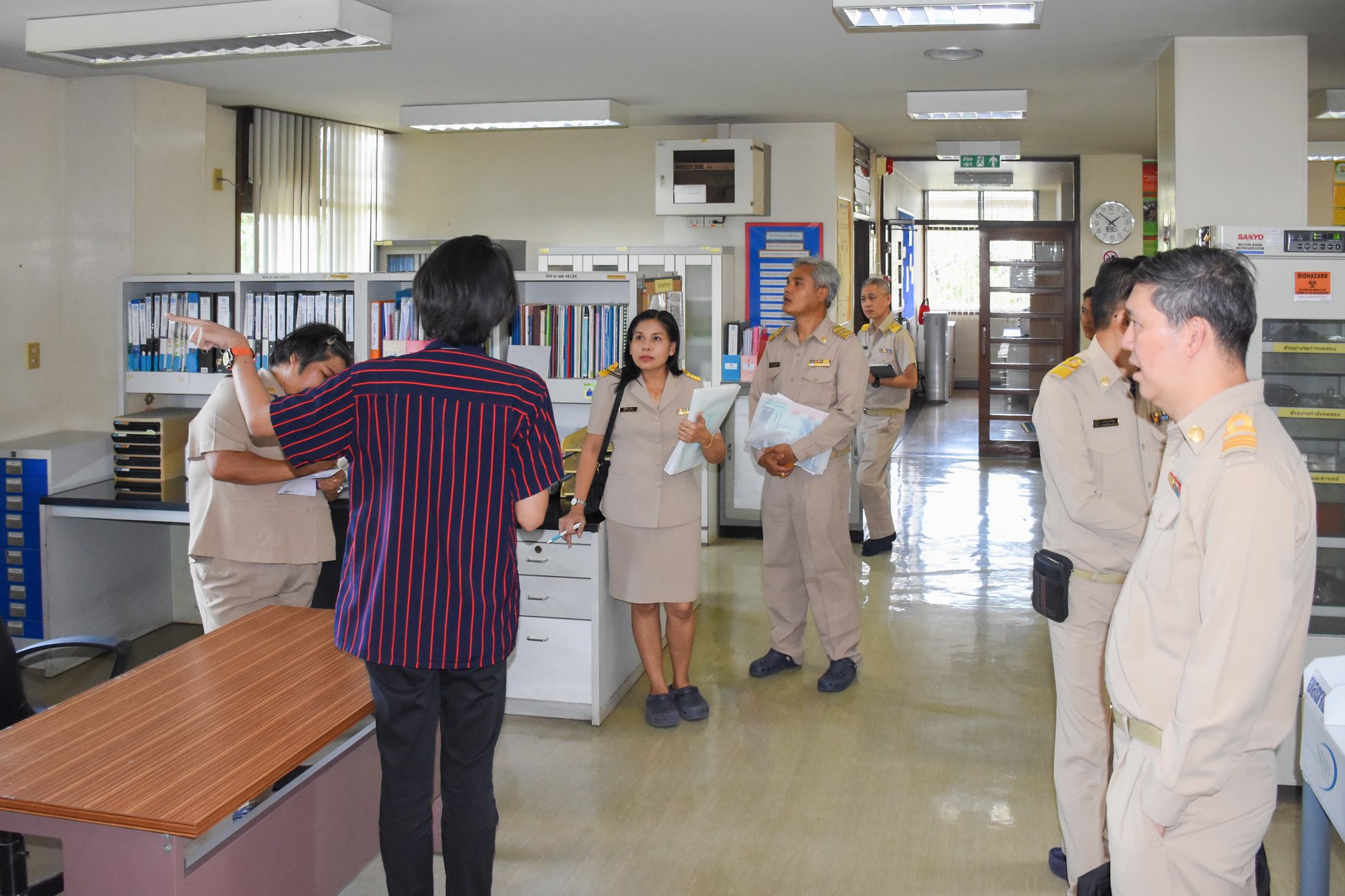 เมื่อวันที่ 17 กุมภาพันธ์ 2563 นายสัตวแพทย์เชาวฤทธิ์ บุญมาทิต ผู้อำนวยการสถาบันสุขภาพสัตว์แห่งชาติ ให้การต้อนรับ ดร.แสนศักดิ์ นาคะวิสุทธิ์ ผู้เชี่ยวชาญด้านส่งเสริมและพัฒนาสัตว์เล็ก กรมปศุสัตว์ ในฐานะประธานคณะกรรมการตรวจประเมินการดำเนินงานกิจกรรม 5 ส ของหน่วยราชการในสังกัดกรมปศุสัตว์ และคณะ ในการนี้ได้มีนางสาวปิยะวรรณ เกิดพันธ์ เจ้าพนักงานธุรการชำนาญงาน ประธานคณะทำงานการดำเนินงานกิจกรรม 5 ส ของสถาบันสุขภาพสัตว์แห่งชาติ กล่าวสรุปรายงานผลการดำเนินงานกิจกรรม 5 ส และนำคณะกรรมการตรวจประเมินในกลุ่ม/ศูนย์/ฝ่ายต่าง ๆ