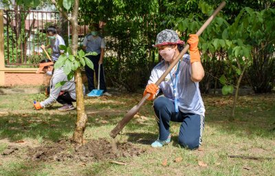 วันอังคารที่ 25 พฤษภาคม 2564 เวลา 09.30 น. เจ้าหน้าที่สถาบันสุขภาพสัตว์แห่งชาติ นำโดย สพ.ญ.ดร.พัชรี ทองคำคูณ ผู้อำนวยการสถาบันสุขภาพสัตว์แห่งชาติ ร่วมกิจกรรมวันต้นไม้ประจำปีของชาติ 2564 โดยร่วมกันดูแล บำรุงรักษาต้นไม้ รดน้ำ พรวนดิน เก็บกวาดใบไม้แห้ง บริเวณพื้นที่รอบสถาบันฯ เพื่อเพิ่มพื้นที่สีเขียวรอบบริเวณหน่วยงาน