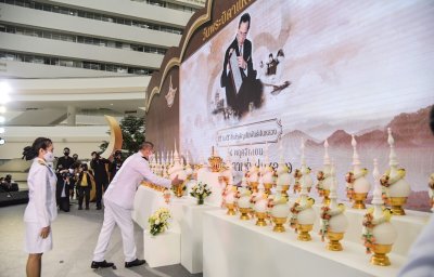 วันเสาร์ที่ 14 พฤศจิกายน 2563 เวลา 09.00 น. นายเฉลิมชัย ศรีอ่อน รัฐมนตรีว่าการกระทรวงเกษตรและสหกรณ์ คณะผู้บริหาร ข้าราชการ หน่วยงานในสังกัดกระทรวงเกษตรและสหกรณ์ ร่วมพิธีถวายสักการะวางพานพุ่มดอกไม้สด แด่พระบาทสมเด็จพระบรมชนกาธิเบศร มหาภูมิพลอดุลยเดชมหาราช บรมนาถบพิตร เนื่องในวันพระบิดาแห่งฝนหลวง ประจำปี 2563 โดยมีนายทองเปลว กองจันทร์ ปลัดกระทรวงเกษตรและสหกร์ กล่าวรายงานการจัดงานดังกล่าว เมื่อเวลา 08.30 น. กรมปศุสัตว์ โดย นายสัตวแพทย์สรวิศ ธานีโต อธิบดีกรมปศุสัตว์ ได้มอบหมายให้นายสัตวแพทย์เศรษฐเกียรติ กระจ่างวงษ์ รองอธิบดีกรมปศุสัตว์ เป็นผู้แทนกรมเข้าร่วมพิธีถวายสักการะ วางพานพุ่มดอกไม้สด พร้อมด้วยข้าราชการจากสถาบันสุขภาพสัตว์แห่งชาติ ในการนี้ รัฐมนตรีว่าการกระทรวงเกษตรและสหกรณ์ ได้เยี่ยมชมงานนิทรรศการ "๙ ใน ๙ สิ่งสำคัญ สัมพันธ์ฝนหลวง ประจำปี 2563" โดยนายสัตวแพทย์เศรษฐเกียรติ กระจ่างวงษ์ รองอธิบดีกรมปศุสัตว์ พร้อมด้วยนายธีวิทย์ ขาวบุปผา (ผู้อำนวยการกองงานพระราชดำริและกิจกรรมพิเศษ) และเจ้าหน้าที่ ได้ให้การต้อนรับและรายงานสรุปนิทรรศการในส่วนของกรมปศุสัตว์ ภายใต้แนวคิด "๙ ปศุสัตว์วัฒนา ๑๐ สืบสานรักษาต่อยอด" ผ่านโครงการธนาคารโค-กระบือ เพื่อเกษตรกร ตามพระราชดำริ จัดโดยกองงานพระราชดำริและกิจกรรมพิเศษ ณ ลานเอนกประสงค์ อาคารรัฐประศาสนภักดี ศูนย์ราชการเฉลิมพระเกียรติฯ ถนนแจ้งวัฒนะ เขตหลักสี่ กรุงเทพมหานคร