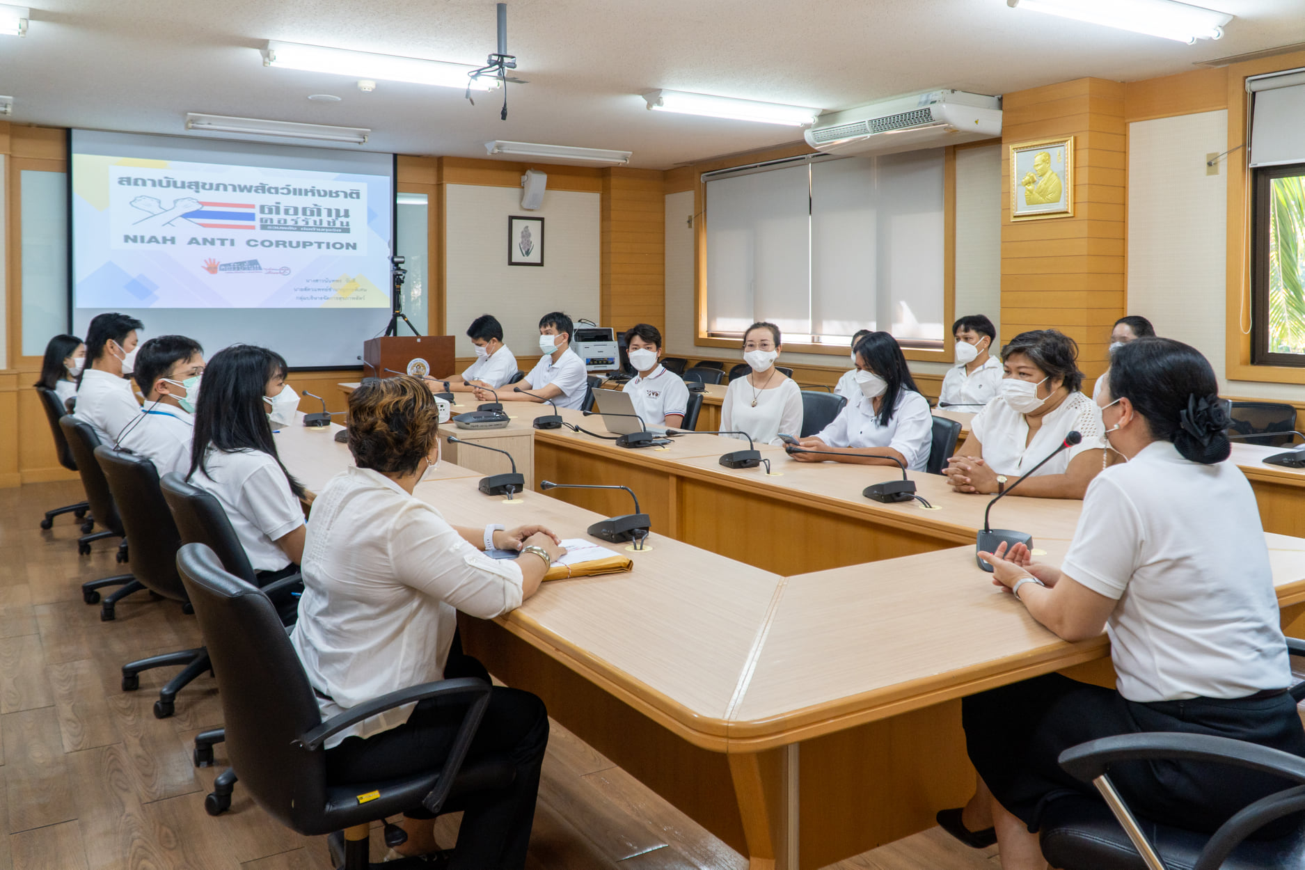 เมื่อวันที่ 9 ธันวาคม 2564 สพ.ญ.ดร.พัชรี ทองคำคูณ ผู้อำนวยการสถาบันสุขภาพสัตว์แห่งชาติ และเจ้าหน้าที่ ได้เข้าร่วมกิจกรรมต่อต้านการทุจริตและประพฤติมิชอบของกรมปศุสัตว์ ปี 2565 โดยมี นายสัตวแพทย์สรวิศ ธานีโต อธิบดีกรมปศุสัตว์ เป็นประธาน นายสัตวแพทย์สรวิศ ธานีโต กล่าวว่า กรมปศุสัตว์เป็นหน่วยงานภาครัฐ ที่ให้บริการอำนวยความสะดวกแก่ประชาชน โดยยึดหลักการทำงานที่ซื่อสัตย์สุจริต โปร่งใส และเป็นธรรมตามหลักธรรมาภิบาล ถือประโยชน์ของประชาชนเป็นหลัก ได้ให้ความสำคัญร่วมจัดกิจกรรมต่อต้านการทุจริตและประพฤติมิชอบของกรมปศุสัตว์ ปี 2565 โดยประกาศเจตจำนงสุจริตจะปฎิบัติหน้าที่และบริหารหน่วยงานอย่างซื่อสัตย์สุจริต โปร่งใส และเป็นธรรมตามหลักธรรมาภิบาล พร้อมมอบโล่รางวัลแก่บุคคลและหน่วยงาน ประกอบด้วย รางวัลผู้ประพฤติตนชอบด้วยความซื่อสัตย์สุจริต 1 ราย รางวัลหน่วยงานที่ผ่านการประเมินระดับคุณธรรมความโปร่งใสในการดำเนินงานระดับ AA ของหน่วยงานในกรมปศุสัตว์ 6 หน่วยงาน และรางวัลยกย่องผู้มีคุณธรรมและจริยธรรมดีเด่น 7 ราย เวลา 07.30 - 10.00 น. ณ ลานจอดรถ กรมปศุสัตว์ พญาไท กรุงเทพมหานคร ข้อมูล : กองการเจ้าหน้าที่ กรมปศุสัตว์
