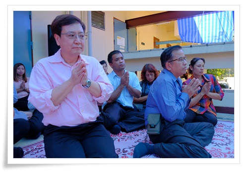 "สพฺเพ สตฺตา อะเวรา โหนตุ อพฺพะยาปชฺฌา โหนตุ อะนีฆา โหนตุ สุขี อตฺตานํ ปะริหะรนฺตุ"