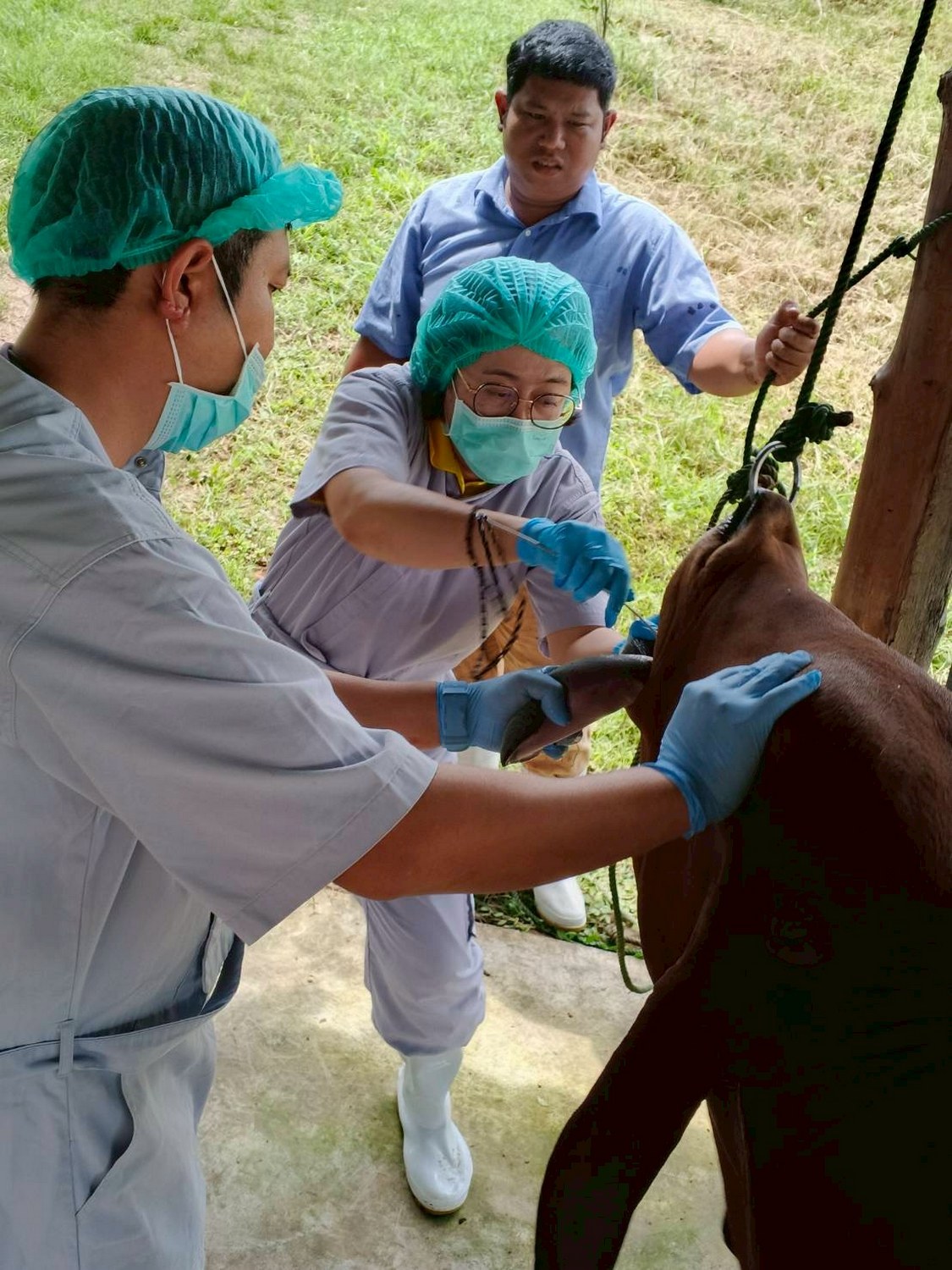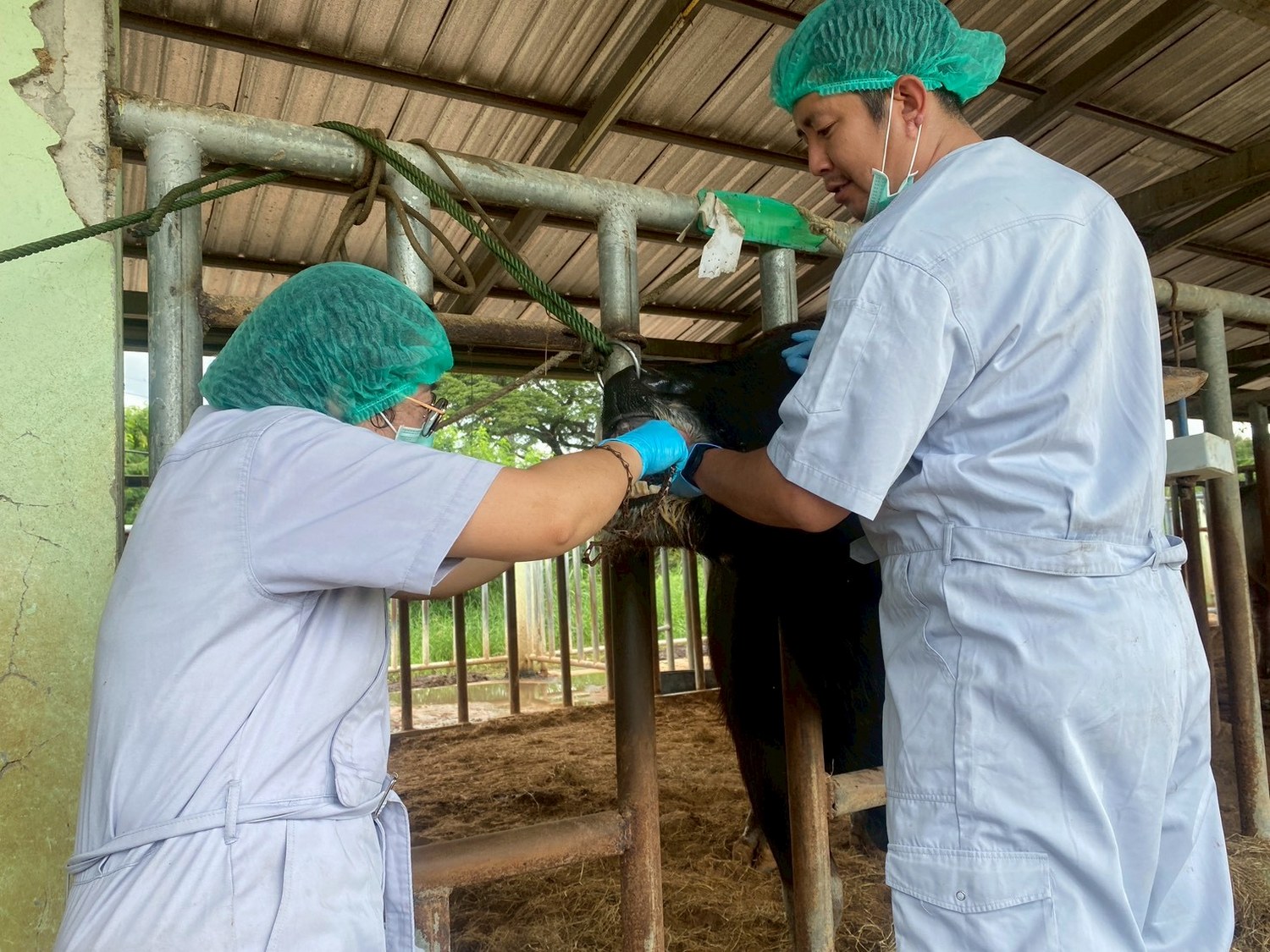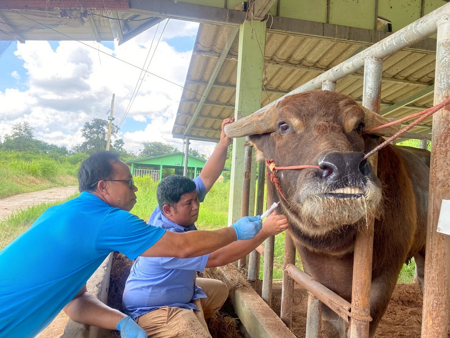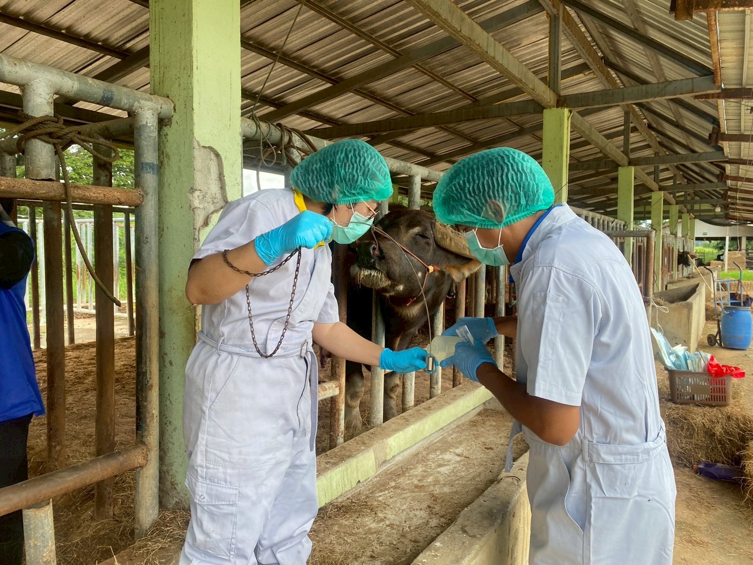วันที่ 2 ตุลาคม พ.ศ. 2568 ที่ผ่านมา ศูนย์อ้างอิงโรคปากและเท้าเปื่อยฯ นำโดย สพ.ญ.ดร.กิ่งกานต์ บุญสุยา สีโย ผู้เชี่ยวชาญด้านวินิจฉัยโรคปากและเท้าเปื่อย ปฏิบัติหน้าที่ในฐานะหัวหน้างานศูนย์อ้างอิงโรคปากและเท้าเปื่อย ภูมิภาคเอเชียตะวันออกเฉียงใต้ พร้อมเจ้าหน้าที่ของศูนย์ฯ ได้เข้าเก็บตัวอย่าง Probang ตามที่สำนักเทคโนโลยีชีวภาพการผลิตปศุสัตว์ ได้ขอความอนุเคราะห์เพื่อตรวจหาเชื้อไวรัสโรคปากและเท้าเปื่อย ในกระบือพ่อพันธุ์และตัวล่อ โคพ่อพันธุ์ จำนวน 17 ตัว ณ สถานีทดสอบสมรรถภาพและฝึกสัตว์พ่อพันธุ์ผสมเทียมขอนแก่น จังหวัดขอนแก่น