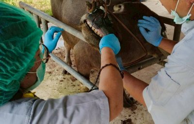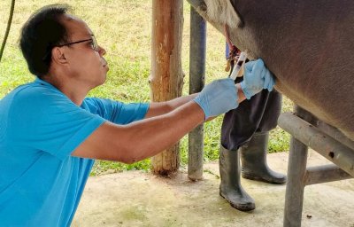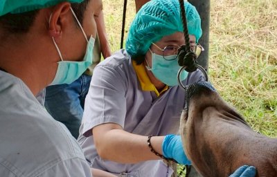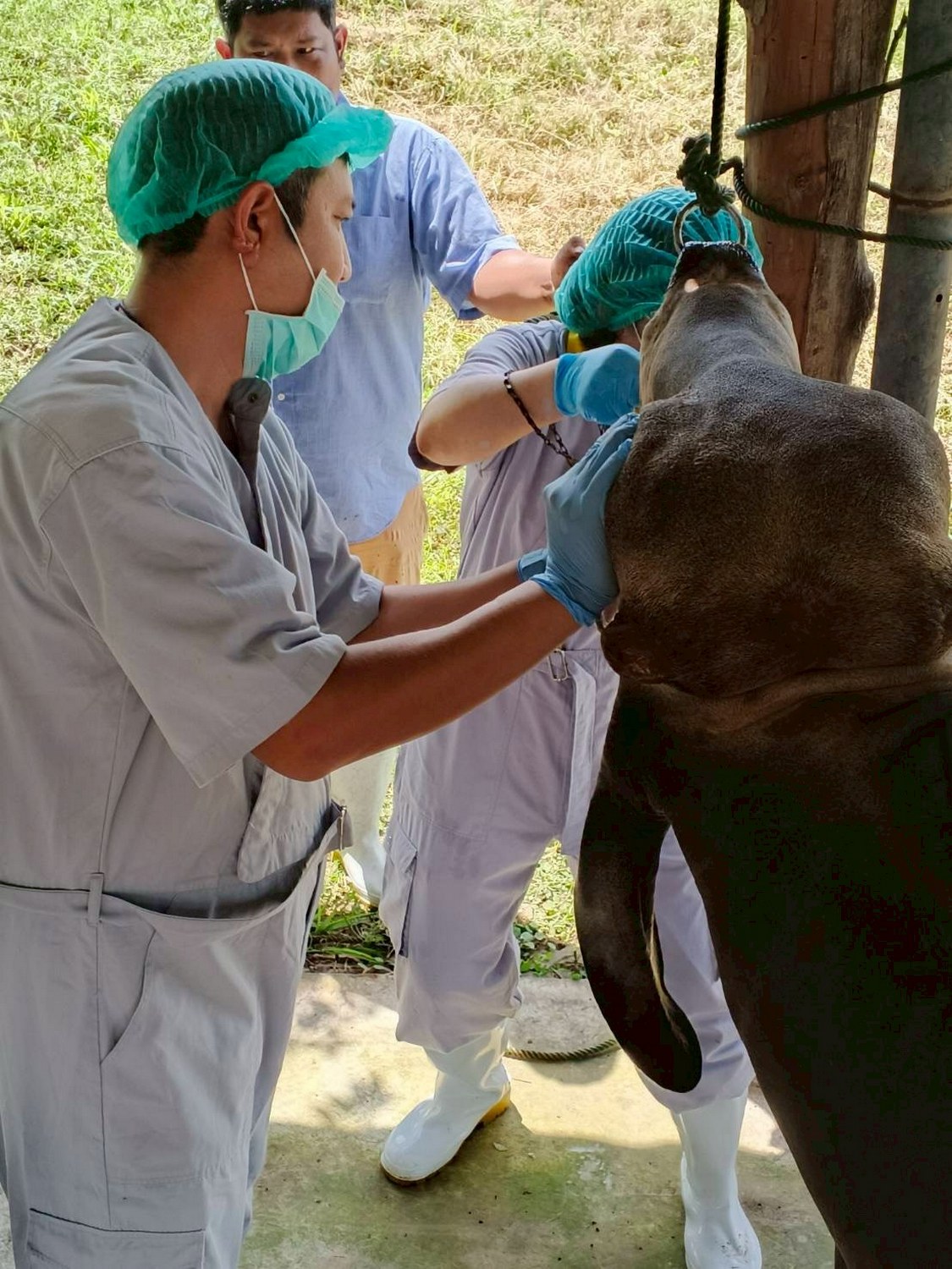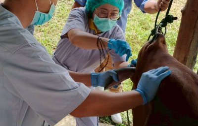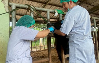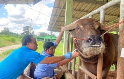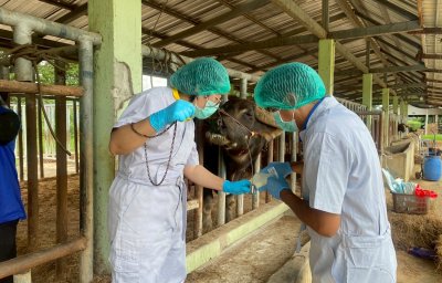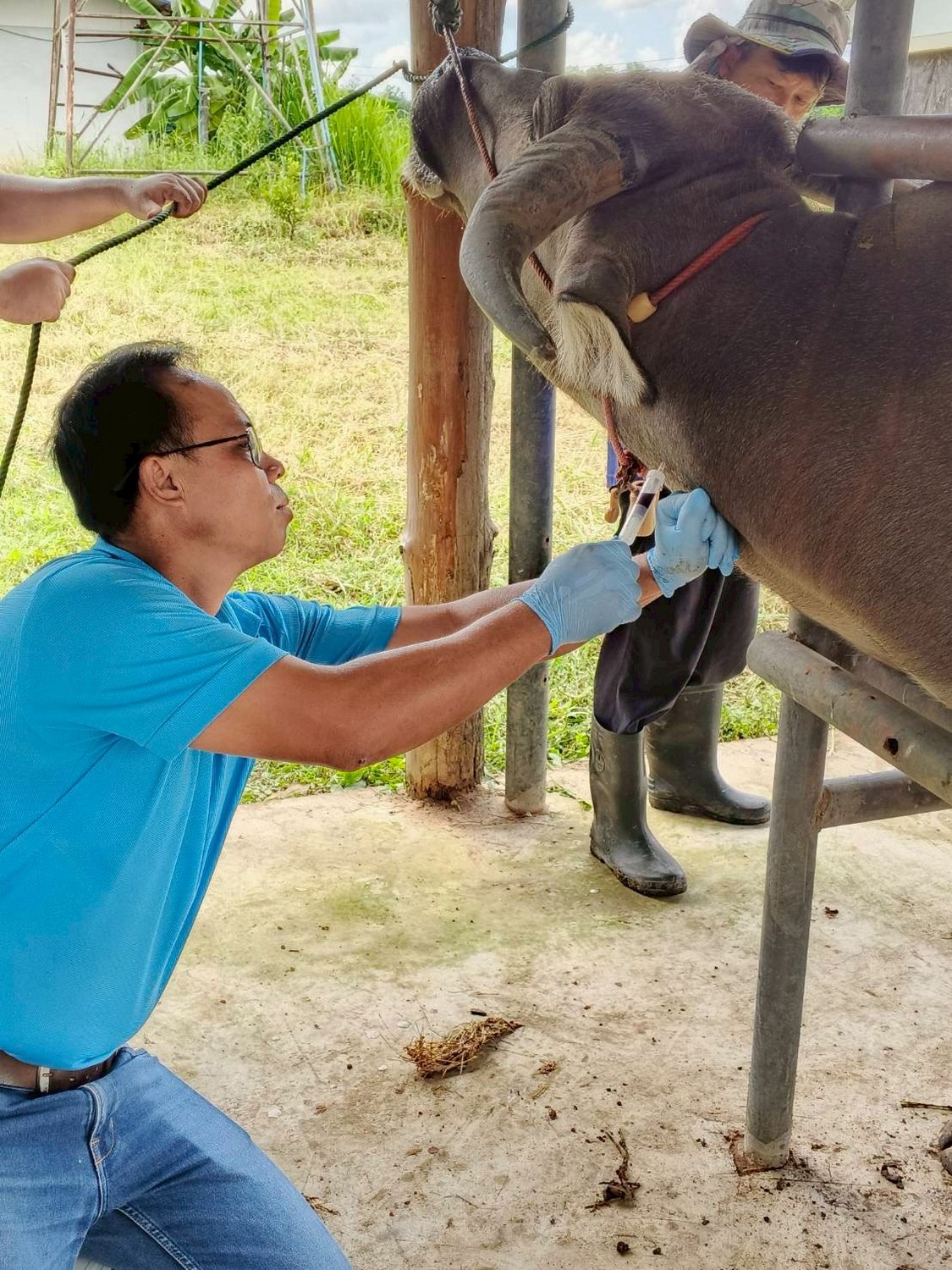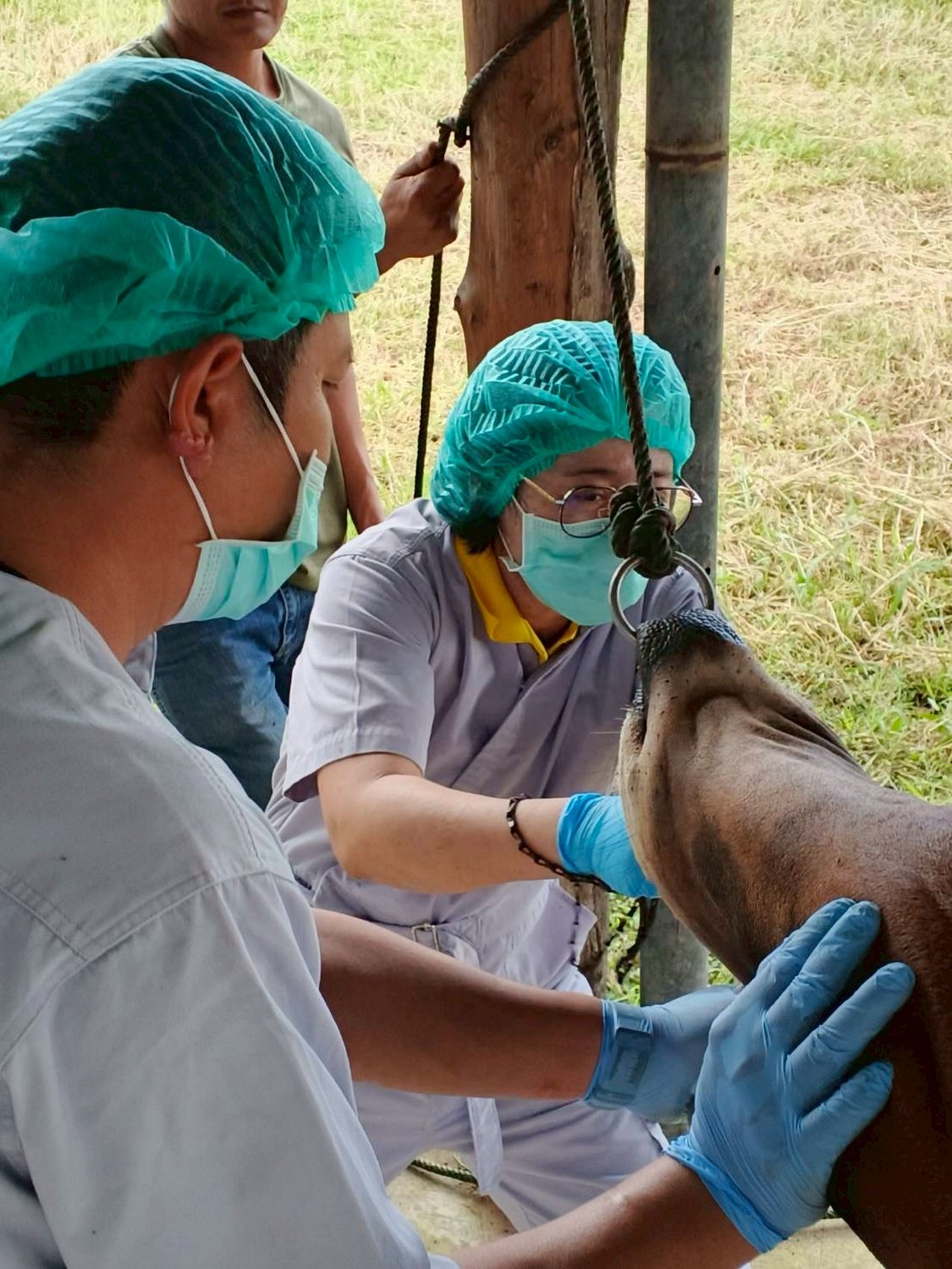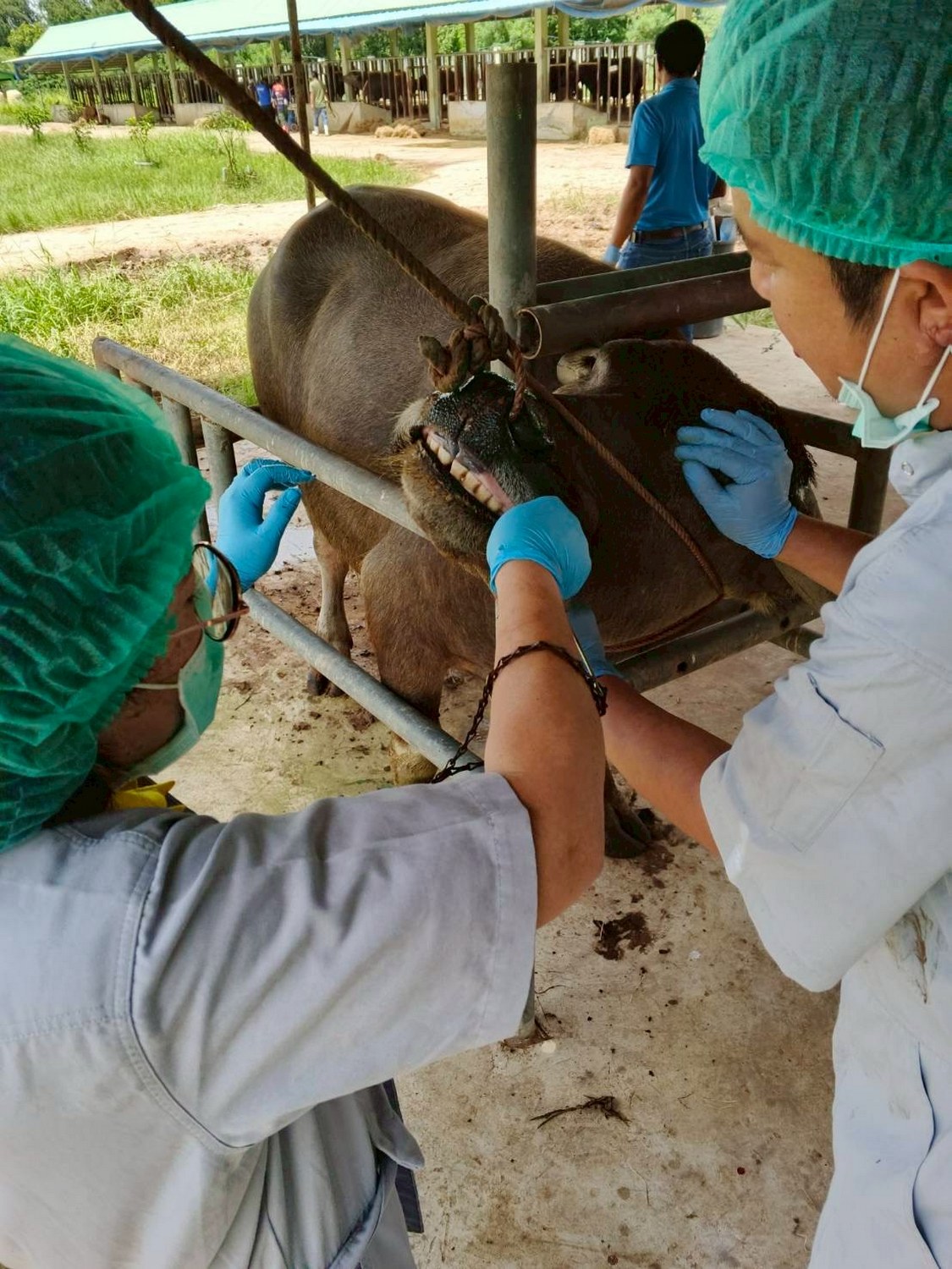 วันที่ 2 ตุลาคม พ.ศ. 2568 ที่ผ่านมา ศูนย์อ้างอิงโรคปากและเท้าเปื่อยฯ นำโดย สพ.ญ.ดร.กิ่งกานต์ บุญสุยา สีโย ผู้เชี่ยวชาญด้านวินิจฉัยโรคปากและเท้าเปื่อย ปฏิบัติหน้าที่ในฐานะหัวหน้างานศูนย์อ้างอิงโรคปากและเท้าเปื่อย ภูมิภาคเอเชียตะวันออกเฉียงใต้ พร้อมเจ้าหน้าที่ของศูนย์ฯ ได้เข้าเก็บตัวอย่าง Probang ตามที่สำนักเทคโนโลยีชีวภาพการผลิตปศุสัตว์ ได้ขอความอนุเคราะห์เพื่อตรวจหาเชื้อไวรัสโรคปากและเท้าเปื่อย ในกระบือพ่อพันธุ์และตัวล่อ โคพ่อพันธุ์ จำนวน 17 ตัว ณ สถานีทดสอบสมรรถภาพและฝึกสัตว์พ่อพันธุ์ผสมเทียมขอนแก่น จังหวัดขอนแก่น