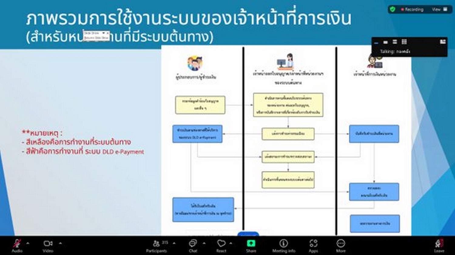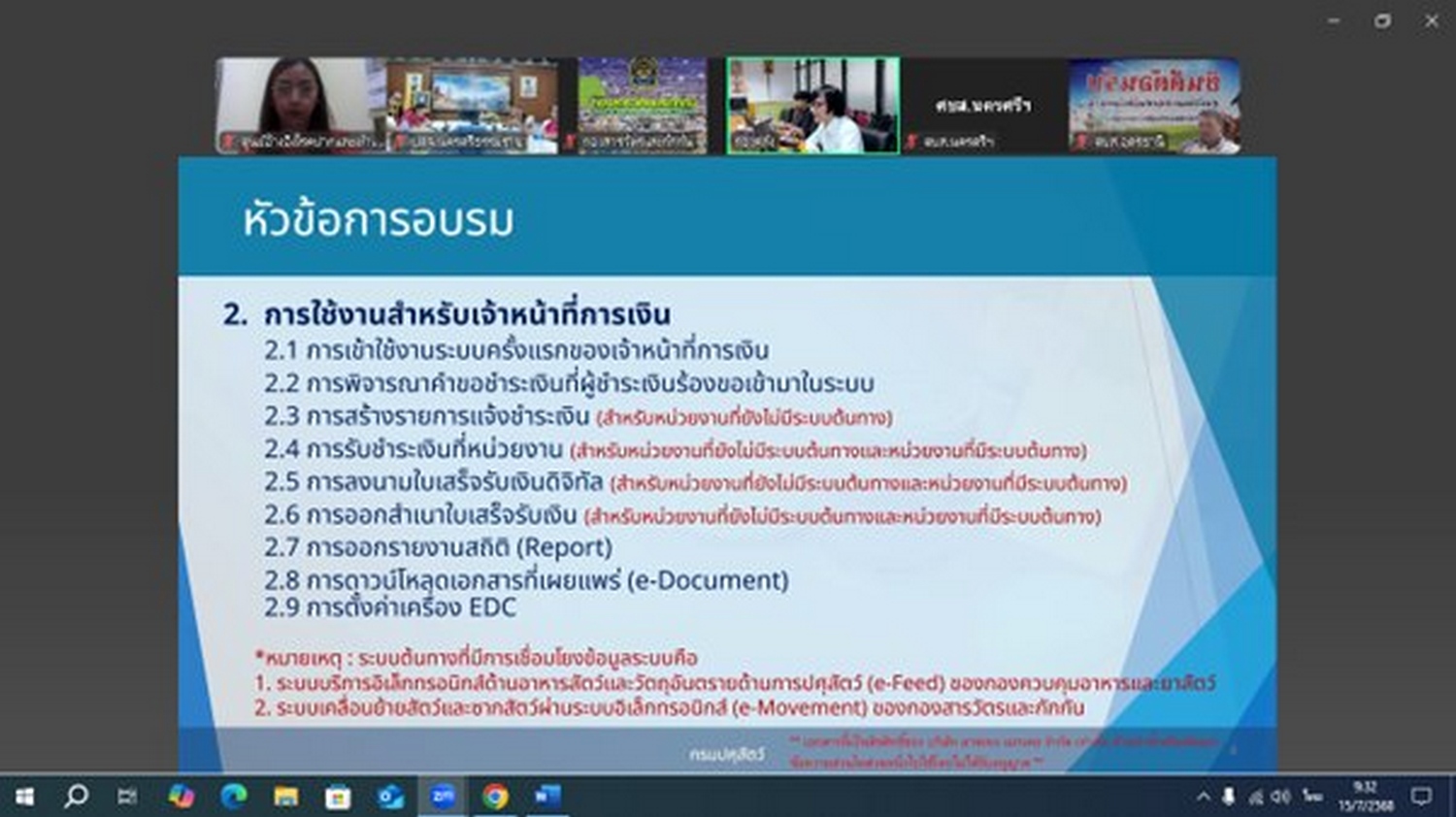 วันที่ 15 กรกฎาคม 2568 สพ.ญ.ดร.กิ่งกานต์ บุญสุยา สีโย ผู้เชี่ยวชาญด้านวินิจฉัยโรคปากและเท้าเปื่อย ปฏิบัติหน้าที่ในฐานะหัวหน้างานศูนย์อ้างอิงโรคปากและเท้าเปื่อย ภูมิภาคเอเชียตะวันออกเฉียงใต้มอบหมายให้นางสาวณัฏฐ์ อิสริยานนท์ เจ้าพนักงานธุรการปฏิบัติงาน และนางสาวอุบล เทพศิริ เจ้าพนักงานการเงินและบัญชี เข้าร่วมประชุมฝึกอบรมการใช้งานระบบการรับชำระเงินอิเล็กทรอนิกส์ (e-Payment) กลาง กรมปศุสัตว์ ผ่านระบบประชุมทางไกล Zoom meeting ซึ่งจัดโดยกองคลัง กรมปศุสัตว์ มีนายพงษ์พันธ์ ธรรมมา รองอธิบดีกรมปศุสัตว์ เป็นประธานในการประชุมการประชุมครั้งนี้จัดขึ้นเพื่อให้เจ้าหน้าที่ที่เกี่ยวข้องในการออกใบเสร็จรับเงินของกรมปศุสัตว์ มีความรู้ และเข้าใจแนวทางการปฏิบัติงาน ให้มีความสามารถในการปฏิบัติงานการใช้งานระบบการรับชำระเงินอิเล็กทรอนิกส์ (e-Payment) กลาง กรมปศุสัตว์ ได้อย่างมีประสิทธิภาพ