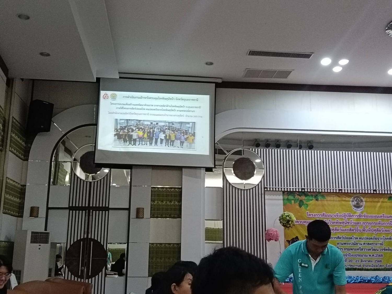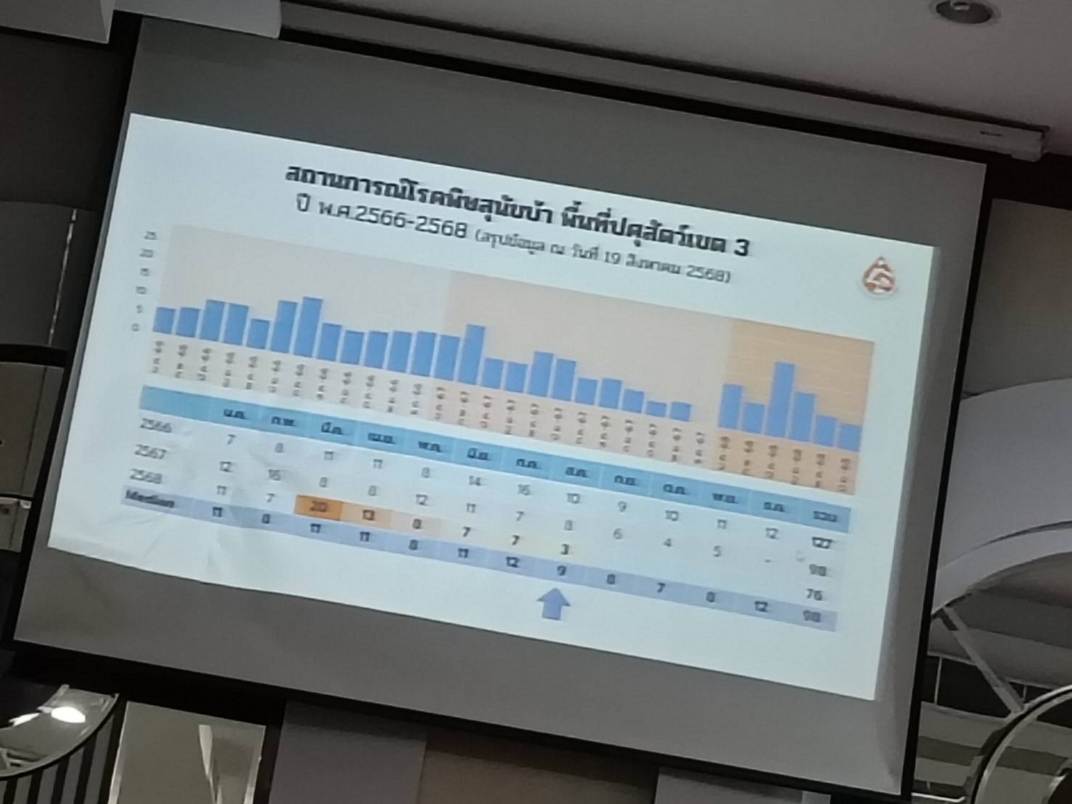 เมื่อวันที่ 20–21 สิงหาคม2568 สพ.ญ.ดร.กิ่งกานต์ บุญสุยา สีโย ผู้เชี่ยวชาญด้านวินิจฉัยโรคปากและเท้าเปื่อย ปฏิบัติหน้าที่ในฐานะหัวหน้างานศูนย์อ้างอิงโรคปากและเท้าเปื่อยภูมิภาคเอเชียตะวันออกเฉียงใต้ ได้มอบหมายให้นายอรงกรณ์ พันธุมาตย์ นักวิชาการสัตวบาลเข้าร่วมการประชุมสัมมนาเชิงปฏิบัติการซักซ้อมเตรียมความพร้อมการควบคุมป้องกันโรคพิษสุนัขบ้า และการยกระดับการป้องกันโรคพิษสุนัขบ้าในปศุสัตว์และสัตว์อื่น พื้นที่ปศุสัตว์เขต 3 ภายใต้โครงการสัตว์ปลอดโรค คนปลอดภัยจากโรคพิษสุนัขบ้าฯ ประจำปีงบประมาณ ณโรงแรมเดอะกรีนปาร์คแกรนด์ยโสธร อ.เมือง จ.ยโสธร