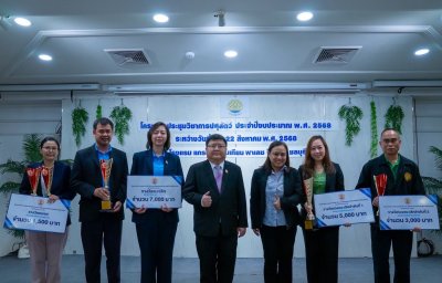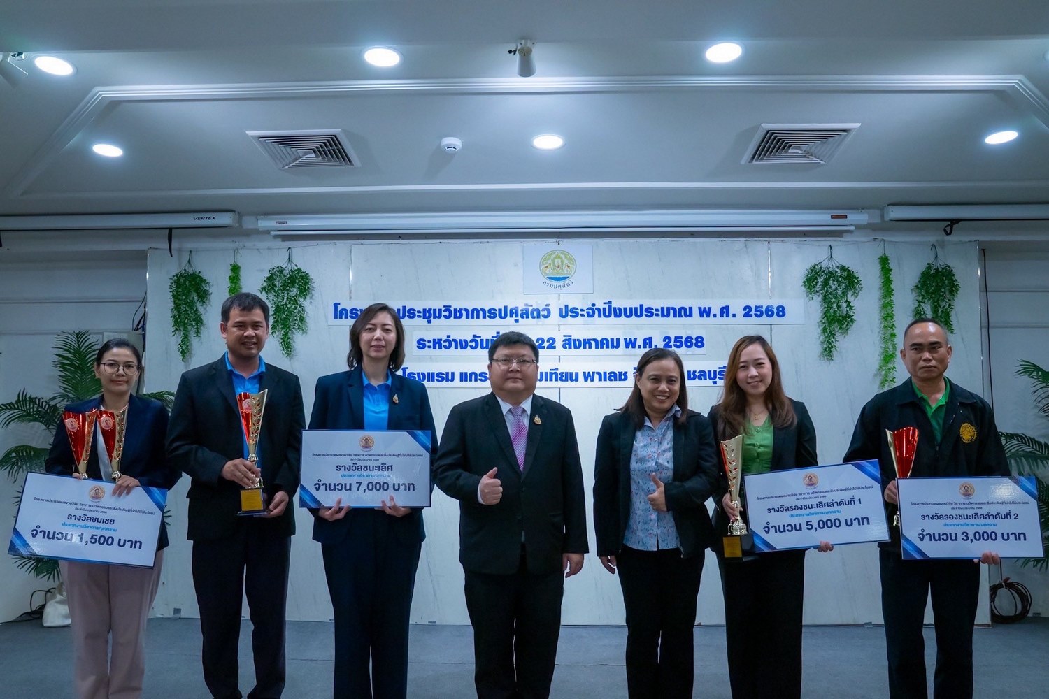 วันที่ 20-22 สิงหาคม 2568 สพ.ญ.ดร.กิ่งกานต์ บุญสุยา สีโย ผู้เชี่ยวชาญด้านวินิจฉัยโรคปากและเท้าเปื่อย ปฏิบัติหน้าที่ในฐานะหัวหน้างานศูนย์อ้างอิงโรคปากและเท้าเปื่อย ภูมิภาคเอเชียตะวันออกเฉียงใต้ มอบหมายให้ สพ.ญ.นลินี หงษ์ชุมพล นายสัตวแพทย์ชำนาญการพิเศษ เข้าร่วมประชุมวิชาการปศุสัตว์ ประจำปีงบประมาณ พ.ศ. 2568 ณ โรงแรมแกรนด์ จอมเทียน พาเลซ จังหวัดชลบุรี โดยการประชุมดังกล่าวมีวัตถุประสงค์เพื่อให้นักวิจัยกรมปศุสัตว์ได้นำเสนอผลงานวิชาการ แลกเปลี่ยนความรู้ ประสบการณ์ในการดำเนินงานวิจัย ด้านการผลิตสัตว์ ด้านสุขภาพสัตว์ ด้านมาตรฐานสินค้าปศุสัตว์ และสังคมศาสตร์ และเสวนาในหัวข้อการพัฒนาการเลี้ยงสัตว์ร่วมกับเกษตรกร โดยมีนายสัตวแพทย์โสภัชย์ ชวาลกุล รองอธิบดีกรมปศุสัตว์ เป็นประธานการประชุมฯ และมอบรางวัลการนำเสนอผลงานฯ โดยผลงานวิชาการของศูนย์อ้างอิงโรคปากและเท้าเปื่อยฯ ได้รับรางวัลชมเชย จำนวน 2 เรื่อง ได้แก่ 1.การเปรียบเทียบความไวและความจำเพาะ non-structural protein ELISA สำหรับตรวจหาแอนติบอดีต่อเชื้อไวรัสปากและเท้าเปื่อยที่มีจำหน่ายในประเทศไทย และ 2.การเปรียบเทียบคุณลักษณะทางแอนติเจนของสายพันธุ์วัคซีนโรคปากและเท้าเปื่อย ซีโรไทป์ O กับไวรัสโรคปากและเท้าเปื่อย ซีโรไทป์ O/ME-SA/Ind2001 ที่แพร่ระบาดในประเทศไทย