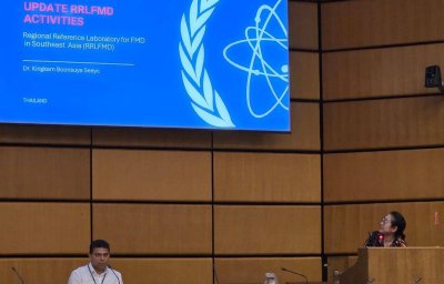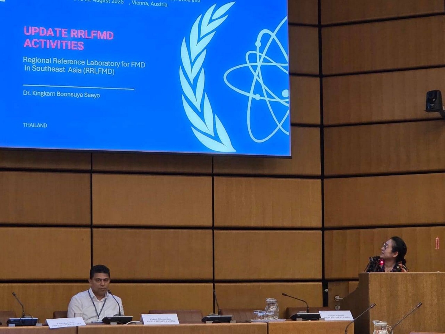วันที่ 18 - 22 สิงหาคม 2568 น.สพ.เลิศชัย จินตพิทักษ์สกุล ผู้อำนวยการสถาบันสุขภาพสัตว์แห่งชาติ และสพ.ญ.ดร.กิ่งกานต์ บุญสุยา สีโย ผู้เชี่ยวชาญด้านวินิจฉัยโรคปากและเท้าเปื่อย ปฏิบัติหน้าที่ในฐานะหัวหน้างานศูนย์อ้างอิงโรคปากและเท้าเปื่อย ภูมิภาตเอเชียตะวันออกเฉียงใต้ เข้าร่วมการประชุม Diagnostic Laboratory Network (VETLAB Network) with Directors of African and Asian Veterinary laboratories ที่จัดขึ้นโดย หน่วยงาน Food and Agriculture Organization of the United Nations (FAO) and the International Atomic Energy Agency (IAEA) ณ เมืองเวียนนา ประเทศออสเตรีย ซึ่งการประชุมนี้ มีวัตถุประสงค์เพื่อรายงานความก้าวหน้ากิจกรรมของ Veterinary Diagnostic Laboratory Network (VETLAB Network) ร่วมทั้งการจัดการแก้ไขความท้าทายและช่องว่างต่างๆที่เกิดขึ้นในการวินิจฉัยโรคในสัตว์ และโรคติดต่อจากสัตว์สู่คนของประเทศสมาชิกที่เข้าร่วม