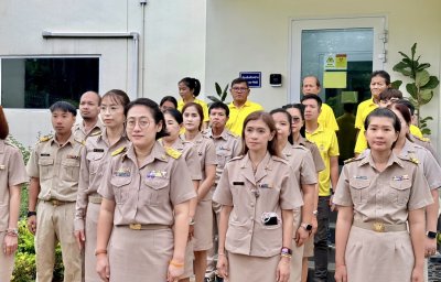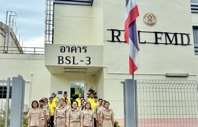 วันที่ 29 กันยายน 2568 เวลา 08.00 น. สพ.ญ.ดร.กิ่งกานต์ บุญสุยา สีโย ผู้เชี่ยวชาญด้านวินิจฉัยโรคปากและเท้าเปื่อย ปฏิบัติหน้าที่ในฐานะหัวหน้างานศูนย์อ้างอิงโรคปากและเท้าเปื่อย ภูมิภาคเอเชียตะวันออกเฉียงใต้ พร้อมด้วยเจ้าหน้าที่ของศูนย์ฯ ร่วมกันจัดกิจกรรมเคารพธงชาติและร้องเพลงชาติไทย เนื่องในวันพระราชทานธงชาติไทย (Thai National Flag Day) 28 กันยายน ประจำปี 2568 เพื่อเป็นการสร้างความภาคภูมิใจของคนในชาติ และเป็นการน้อมรำลึกในพระมหากรุณาธิคุณพระบาทสมเด็จพระมงกุฎเกล้าเจ้าอยู่หัว ที่ทรงพระราชทานธงไตรรงค์เป็นธงชาติไทย