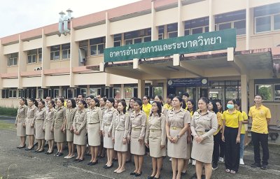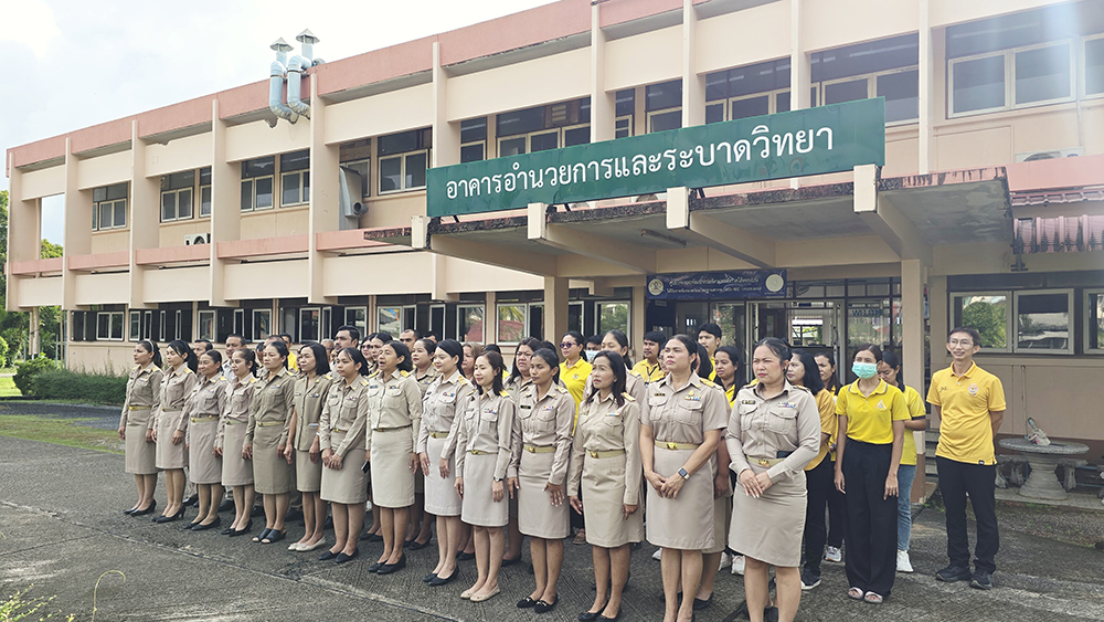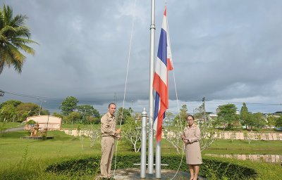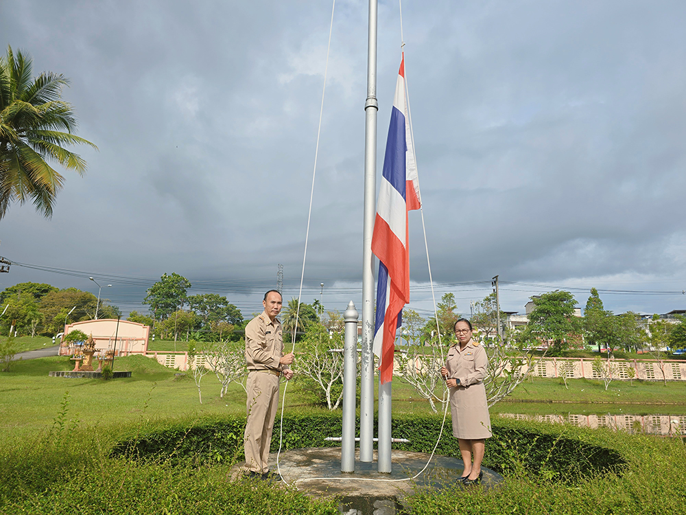 วันที่ 30 กันยายน 2568 สพ.ญ.ดร.วันดี คงแก้ว ผู้อำนวยการศูนย์วิจัยและพัฒนาการสัตวแพทย์ภาคใต้ตอนบน พร้อมด้วยข้าราชการ ลูกจ้างประจำ พนักงานราชการ และพนักงานจ้างเหมา ร่วมกิจกรรมเคารพธงชาติและร้องเพลงชาติไทย เนื่องในวันพระราชทานธงชาติไทย ณ บริเวณหน้าเสาธง อาคารอำนวยการและระบาดวิทยา โดยวันที่ 28 กันยายนของทุกปี คณะรัฐมนตรีได้กำหนดให้เป็น วันพระราชทานธงชาติไทย เพื่อให้หน่วยงานทั่วประเทศพร้อมใจกันจัดกิจกรรมและเชิญธงชาติขึ้นสู่ยอดเสา แสดงถึงความรักชาติ ความสามัคคี และความภาคภูมิใจในสัญลักษณ์ของความเป็นไทย