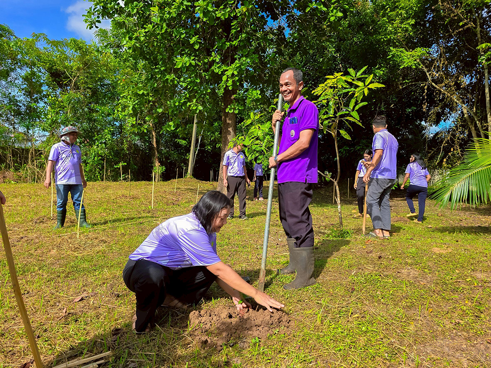 วันที่ 14 ตุลาคม พ.ศ. 2568 สพ.ญ. ดร. วันดี คงแก้ว ผู้อำนวยการศูนย์วิจัยและพัฒนาการสัตวแพทย์ภาคใต้ตอนบน บุคลากรและสมาชิกในครอบครัว ร่วมกันปลูกต้นตะเคียนทองและต้นพยอม กว่า 70 ต้น บนพื้นที่ 2 ไร่ ภายในบริเวณของศูนย์ฯ เนื่องในโอกาส วันรักต้นไม้ประจำปีของชาติ ประจำปี 2568 ที่จะเวียนมาบรรจบในวันที่ 21 ตุลาคม ของทุกปี เพื่อสืบสานพระปณิธานและน้อมรำลึกถึงพระมหากรุณาธิคุณของสมเด็จพระศรีนครินทราบรมราชชนนี สมเด็จย่า ที่ทรงให้ความสำคัญกับการปลูกและบำรุงรักษาต้นไม้เพื่อฟื้นฟูธรรมชาติ และปลูกจิตสำนึกให้ประชาชนตระหนักถึงความสำคัญของต้นไม้และร่วมกันดูแลรักษาต้นไม้ รวมถึงหวงแหนทรัพยากรป่าไม้ของชาติ