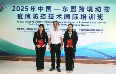 วันที่ 8-15 กันยายน 2568 ศูนย์วิจัยและพัฒนาการสัตวแพทย์ภาคเหนือตอนบน โดย สพ.ญ.อรวรรณ บุญมา นายสัตวแพทย์ชำนาญการ กลุ่มชันสูตรโรคสัตว์ เข้าร่วมการฝึกอบรมหัวข้อ “Molecular Biological Techniques in Cross–border Animal Disease Surveillance and Diagnostics” ภายใต้โครงการ The 2025 China-ASEAN International Training Workshop on Prevention and Control Technologies of Cross-border Animal Infectious Diseases จัดโดย Guangxi Veterinary Research Institute (GVRI) ณ เมืองหนานหนิง มณฑลกว่างซี สาธารณรัฐประชาชนจีน