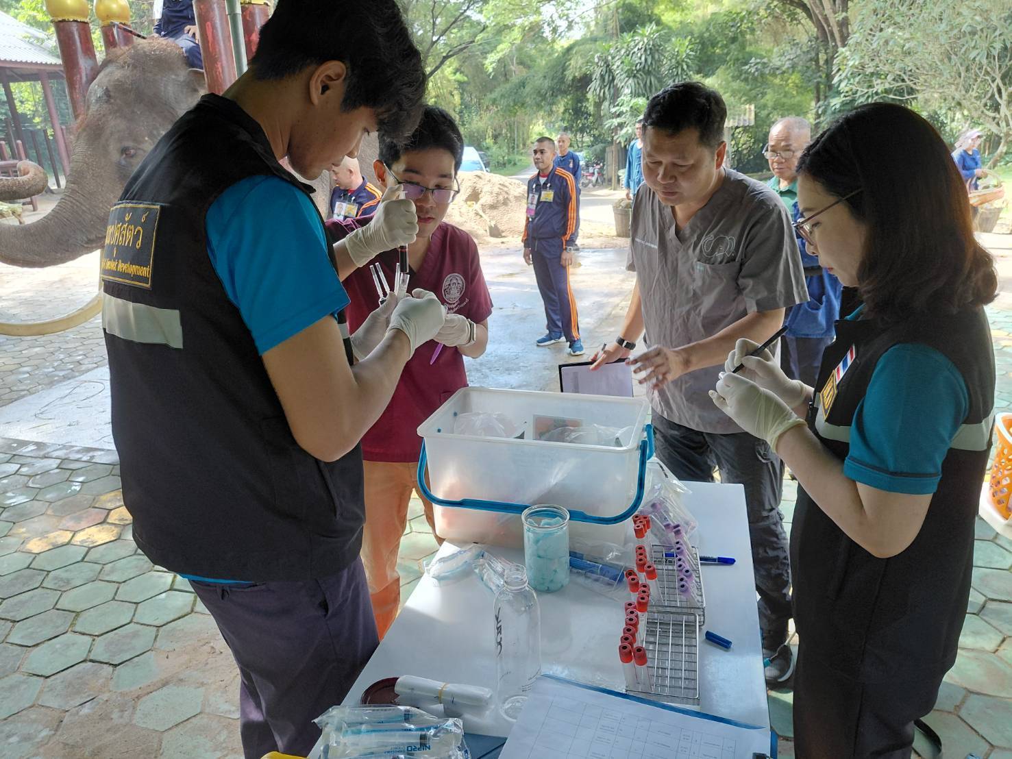 ศูนย์วิจัยและพัฒนาการสัตวแพทย์ภาคเหนือตอนบน โดยสพ.ญ.ดร.ศนิกานต์ ทองสวัสดิ์ นายสัตวแพทย์ชำนาญการพิเศษ ปฏิบัติราชการแทนผู้อำนวยการศูนย์วิจัยและพัฒนาการสัตวแพทย์ภาคเหนือตอนบน ในฐานะประธานคณะกรรมการฝ่ายดูแลสุขภาพช้างสำคัญ พร้อมด้วย น.สพ.นภพล แซ่แห่ว นายสัตวแพทย์ชำนาญการ และเจ้าหน้าที่ศูนย์ฯ เข้าร่วมตรวจสุขภาพช้าง ครั้งที่ 1 ประจำปีงบประมาณ 2569 ณ ศูนย์อนุรักษ์ช้างไทย อ.ห้างฉัตร จ.ลำปาง เพื่อตรวจติดตามสุขภาพช้างสำคัญทั้งหมด 11 ช้างและได้เก็บตัวอย่างเลือด อุจจาระ ปัสสาวะ และสำลีป้ายงวง เพื่อตรวจทางห้องปฏิบัติการเพิ่มเติม โดยมีนายพัชระ สิมะเสถียร รองผู้ว่าราชการจังหวัดลำปาง รองประธานคณะกรรมการฝ่ายอำนวยการดูแลช้างสำคัญ เข้าร่วมสังเกตการณ์